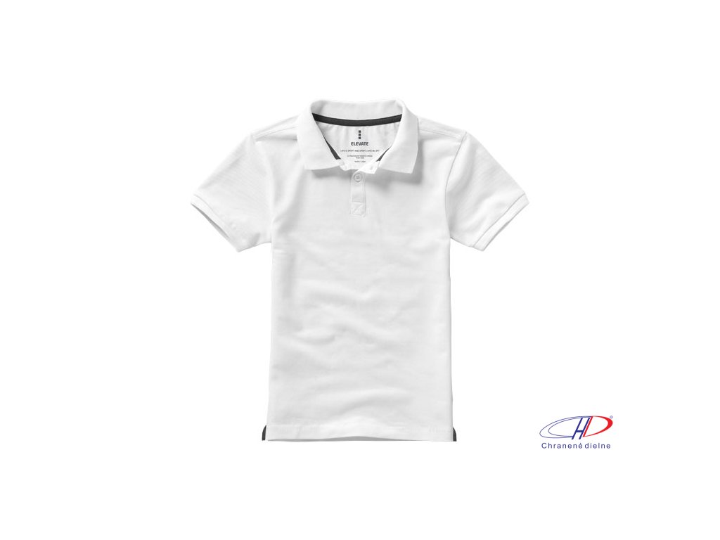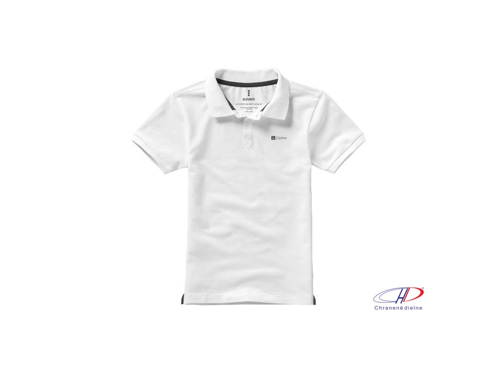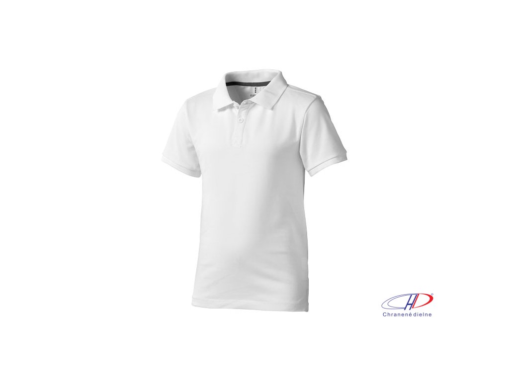 Calgary short sleeve kids polo. Flat knit collar.Flat knit rib cuffs.Two button placket.Pick-Stitch details.Satin neck tape.Side slits with satin tape finishing.Half-moon.Forward shoulder seam with chain stitching.Dyed-to-match engraved buttons.Heat trans