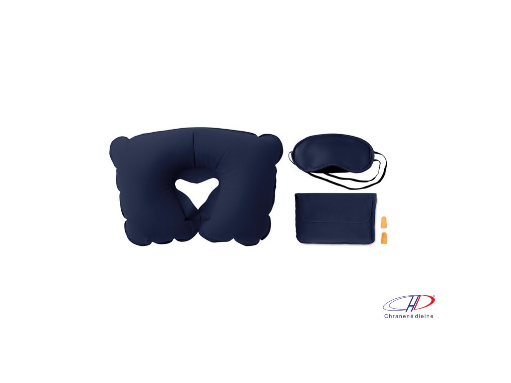 Cestovná sada, nafukovací vankúš, maska na spanie a štuple do uší v puzdre , Blue