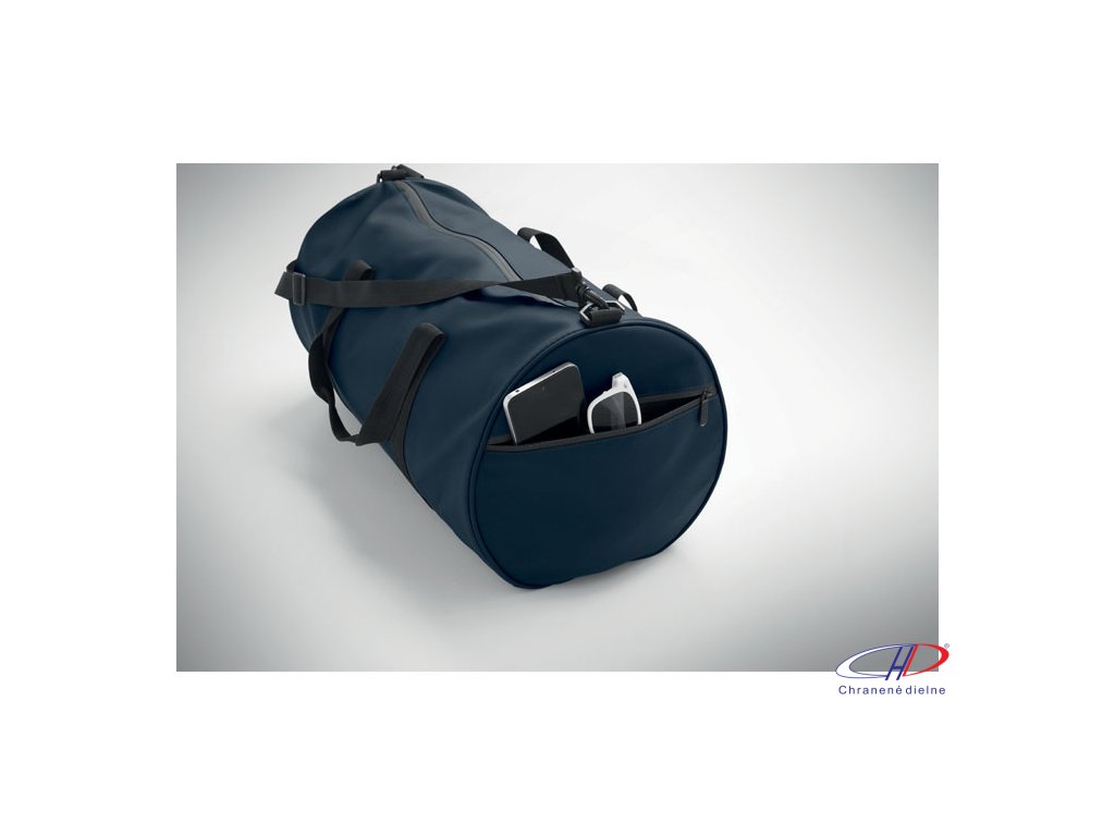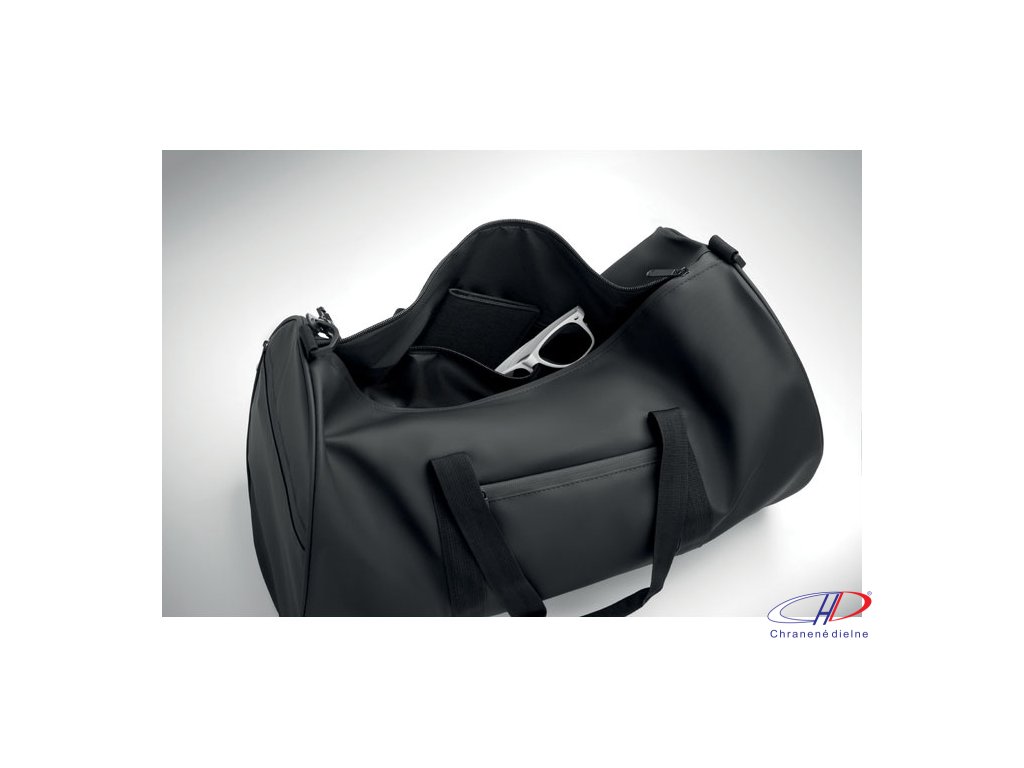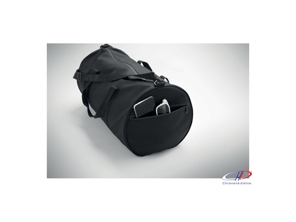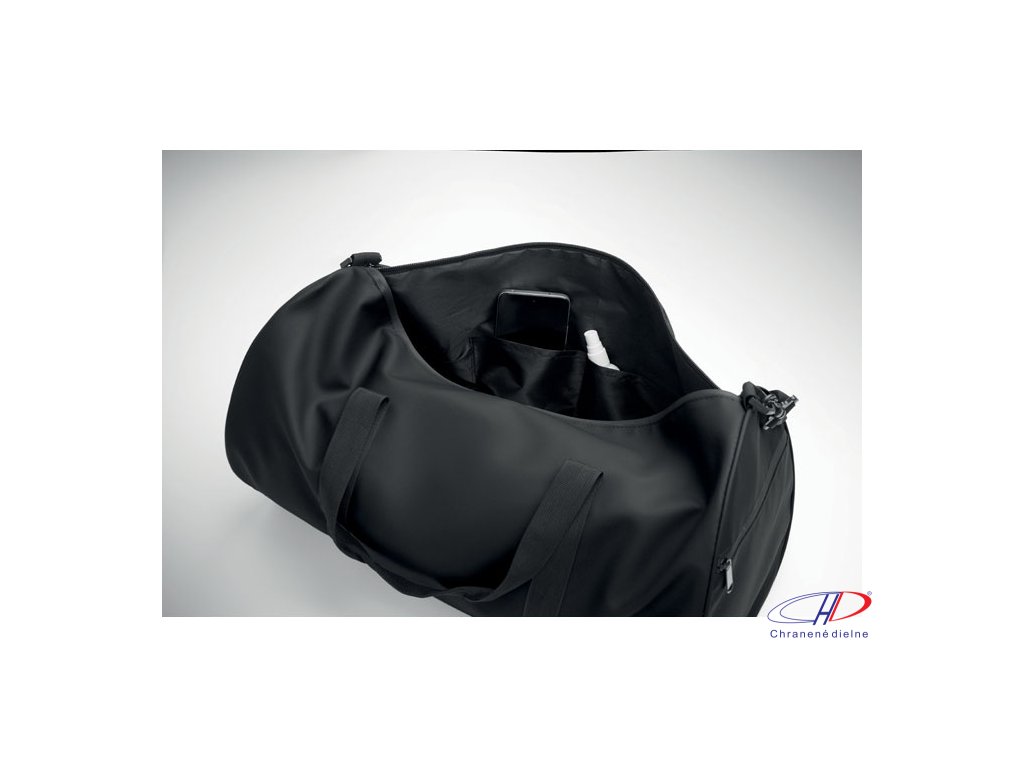 Cestovná taška z 600D RPET polyesteru s PU záterom. Predné vrecko na zips. Vnútorná podšívka z 210D RPET polyesteru. 1 bočné vrecko na zips / 1 bočné sieťované vrecko. Vnútorné vrecko na zips.Dodatočné parametre
