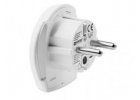 Kompaktný cestovný adaptér na 3-pólové uzemnené zástrčky z Európy (Schuko štandard).