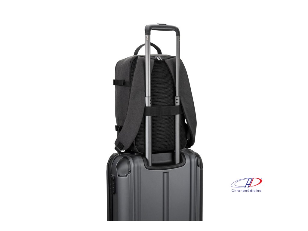 Vodoodpudivý povlak, podšívka z 210D RPET. Hlavný priečinok na oblečenie, polstrovaný priečinok na 14" laptop a predné vrecko. Polstrované horné držadlo, kompresné popruhy na bokoch, sieťovaný chrbát s popruhom na kufor. Kapacita až 20 L.Dodatočné parametre