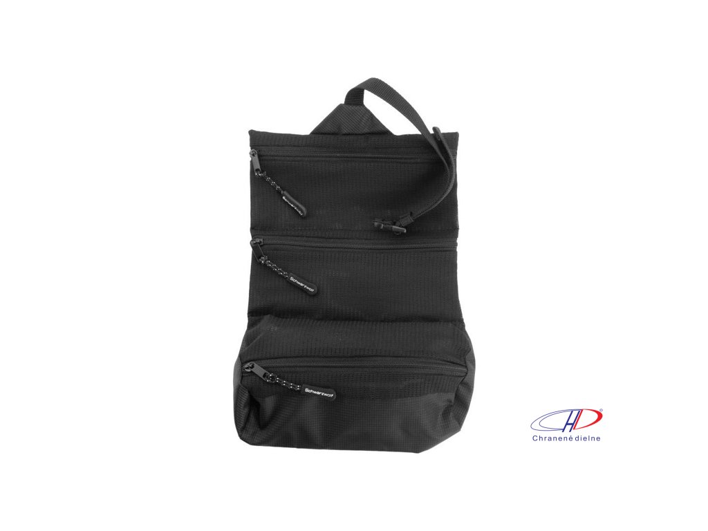 Praktická viacúčelová taška na kozmetiku a drobnosti. Možno ju použiť ako organizér na elektroniku. Taška obsahuje 3 sieťované vrecká na zips. Súčasťou je pracka, ktorú možno použiť na uzavretie zrolovanej tašky alebo na vytvorenie pútka na zavesenie.Dodatočné parametre