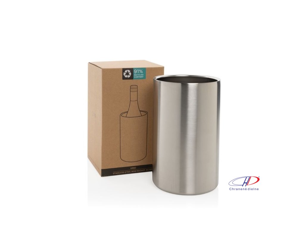 Chladiaca nádoba na víno z recyklovanej nerezovej ocele s certifikáciou RCS. Nádoba je luxusným doplnkom na každom stole, ktorá vám umožní chladiť vaše vína s gráciou a štýlom. Podiel recyklátu: 91 %. Balené v papierovom obale.Dodatočné parametre