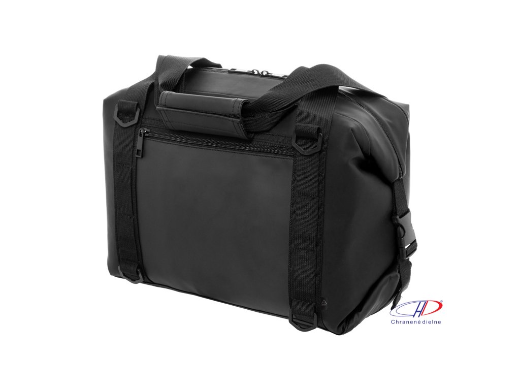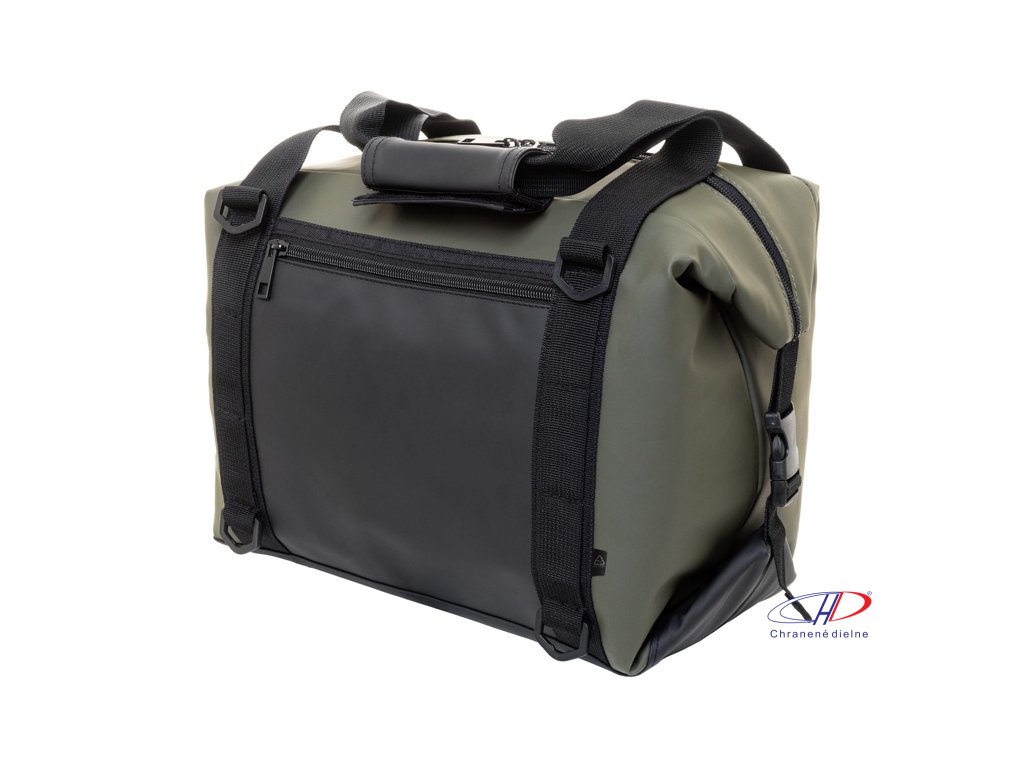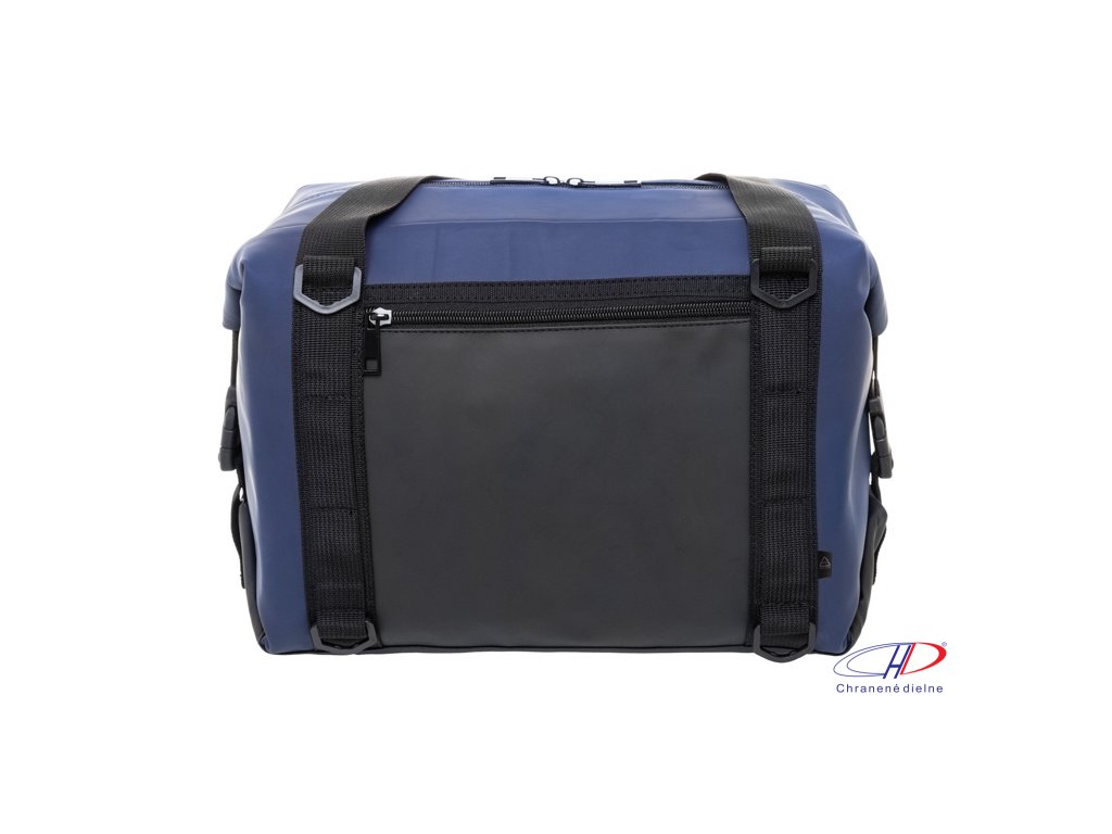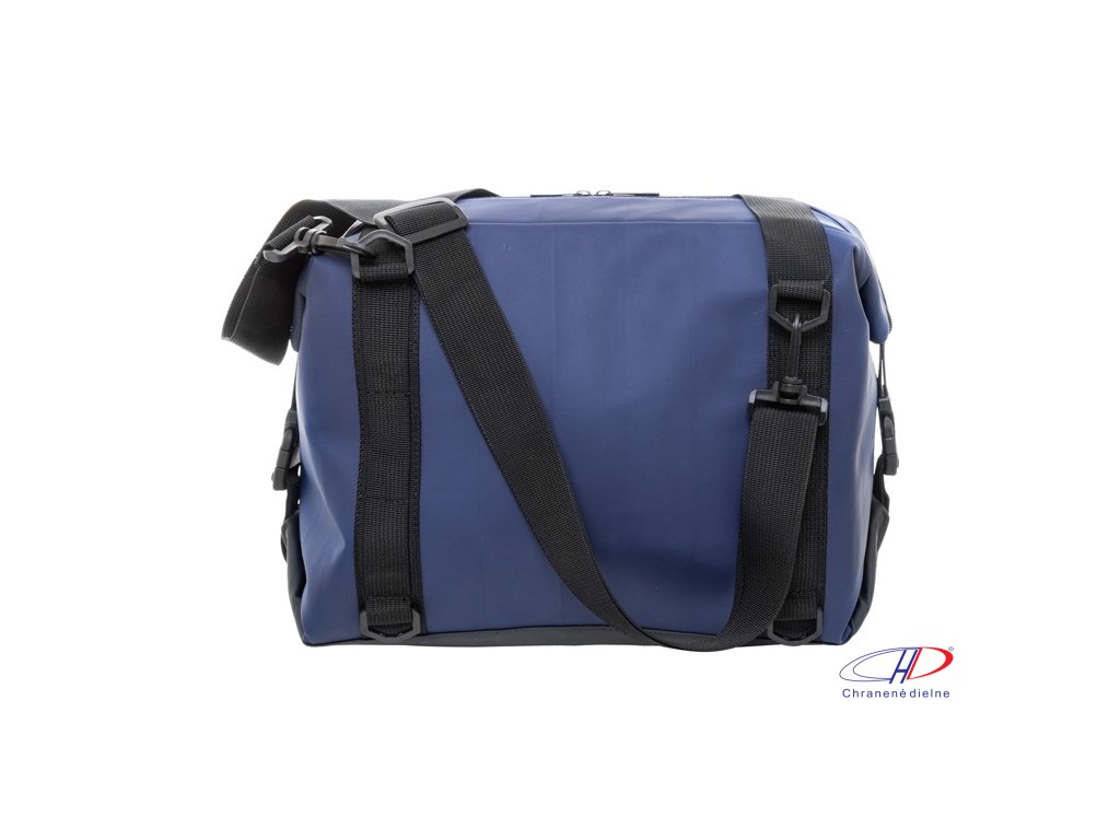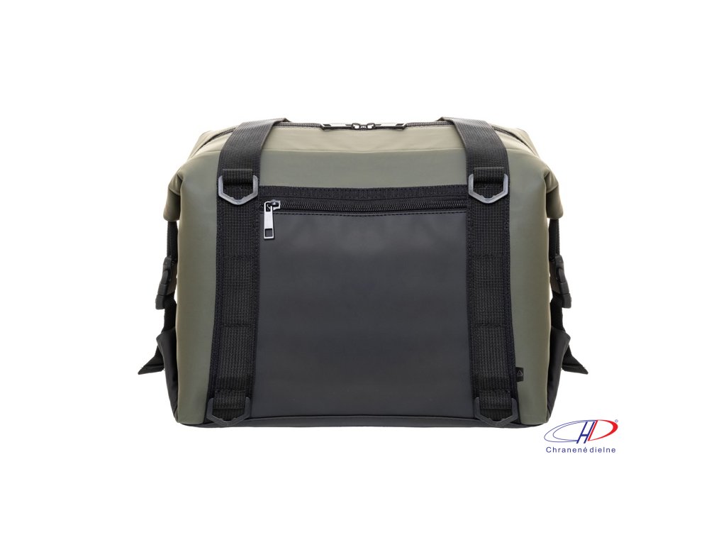 Skladacia chladiaca taška na zips z mäkkej recyklovanej PU kože s hliníkovou výplňou a predným vreckom na zips. S bočnými prackami, držadlami a nastaviteľným popruhom. Možné zložiť naplocho pre ľahké skladovanie alebo ju zaistiť pomocou bočných výstuh.Dodatočné parametre