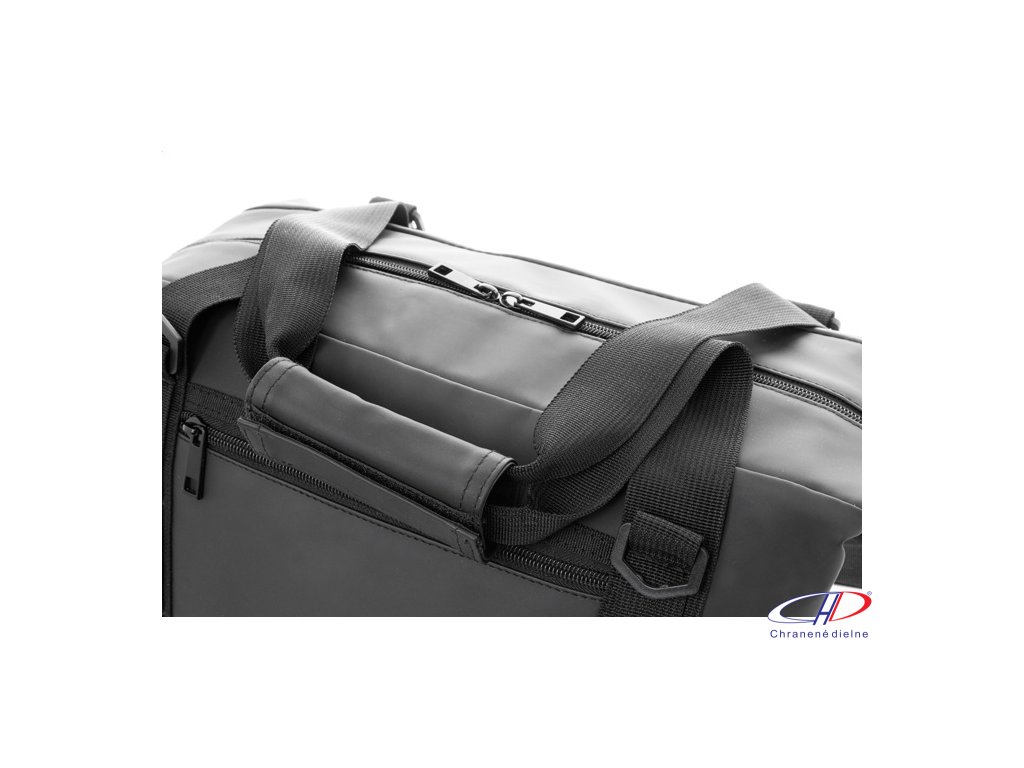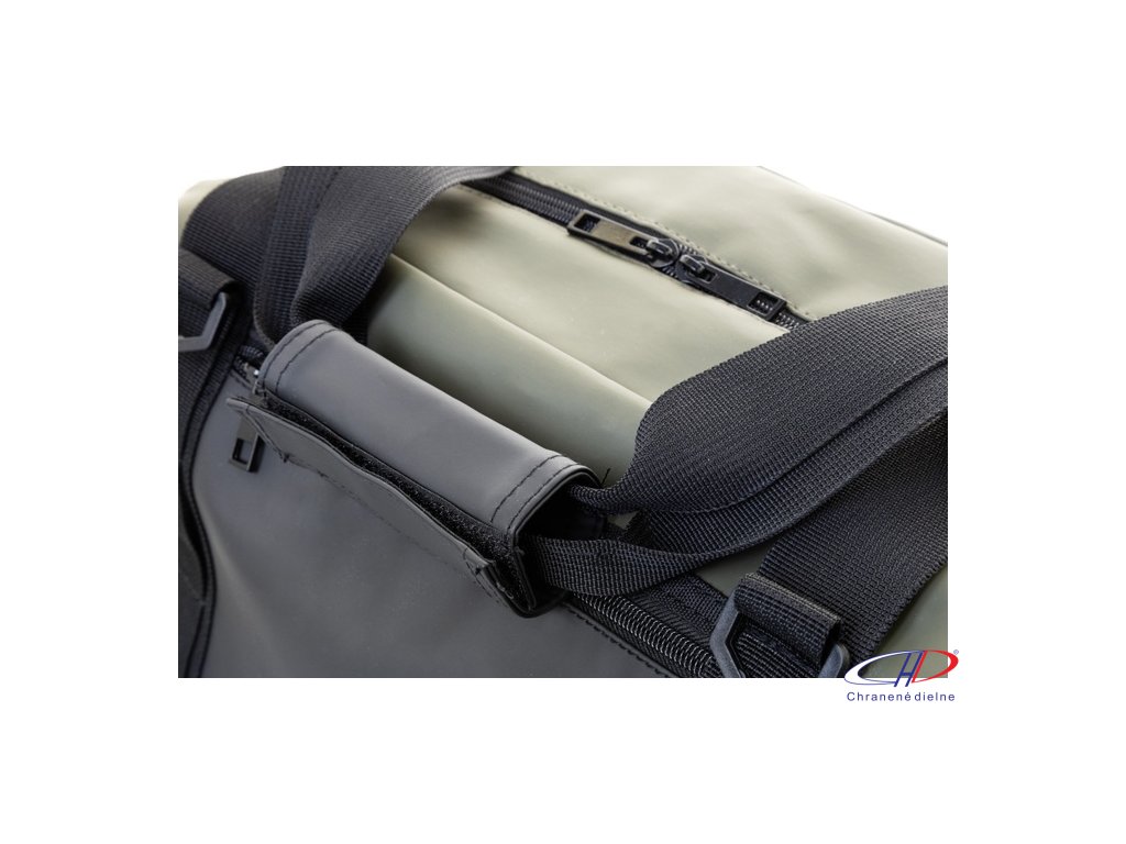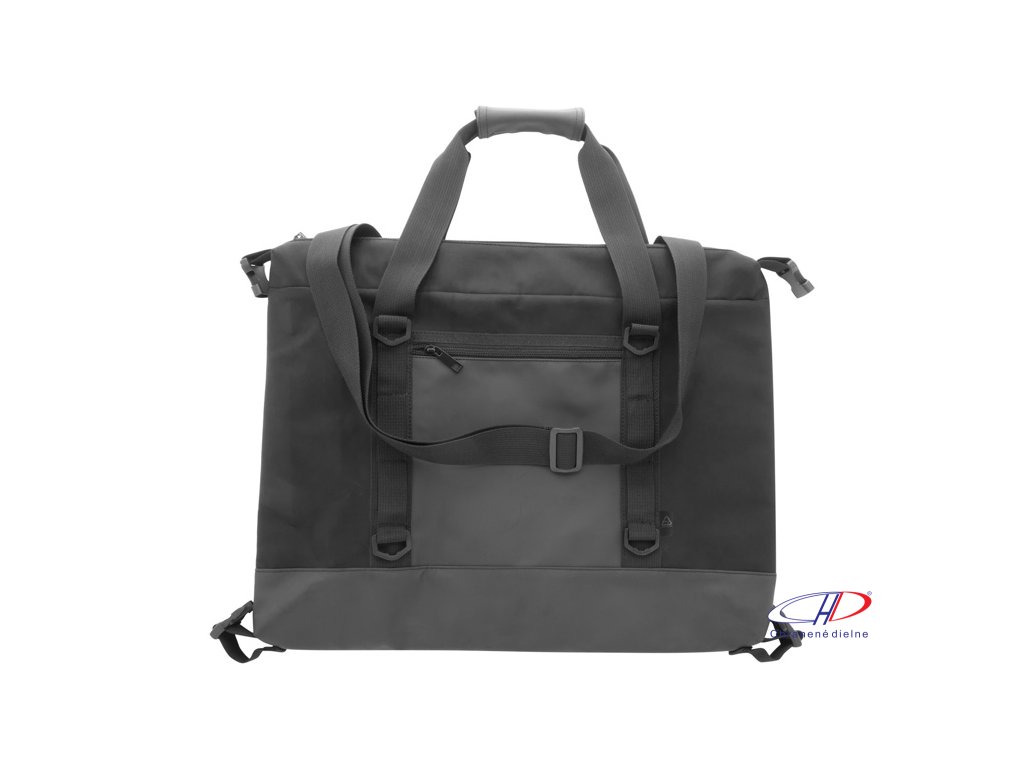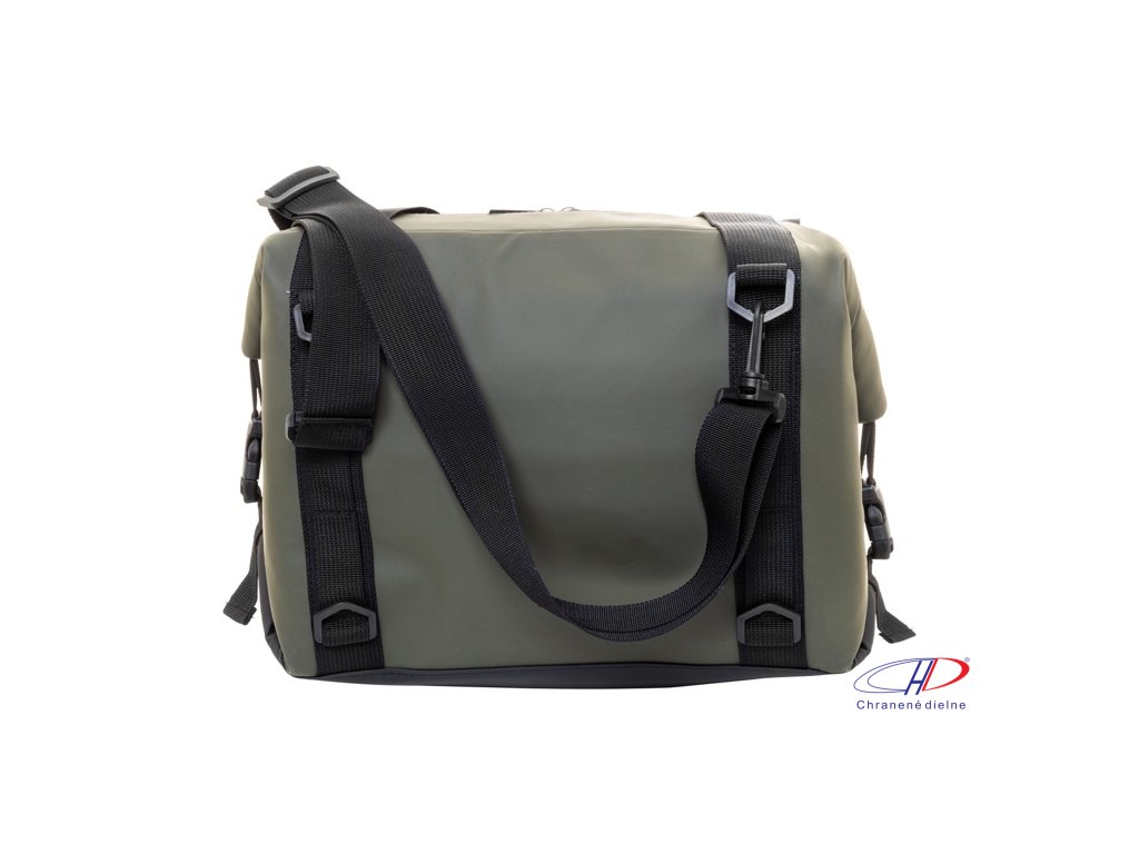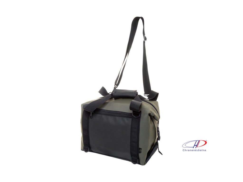 Skladacia chladiaca taška na zips z mäkkej recyklovanej PU kože s hliníkovou výplňou a predným vreckom na zips. S bočnými prackami, držadlami a nastaviteľným popruhom. Možné zložiť naplocho pre ľahké skladovanie alebo ju zaistiť pomocou bočných výstuh.Dodatočné parametre
