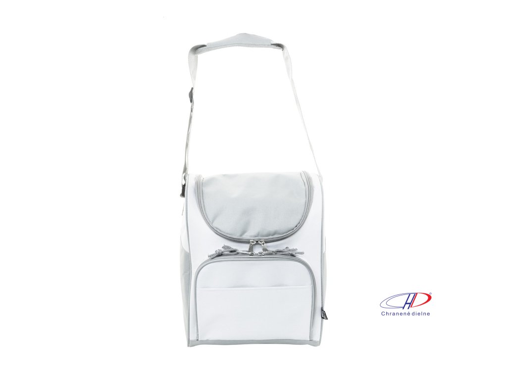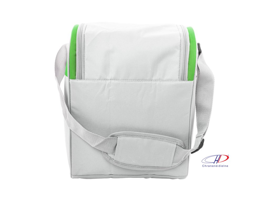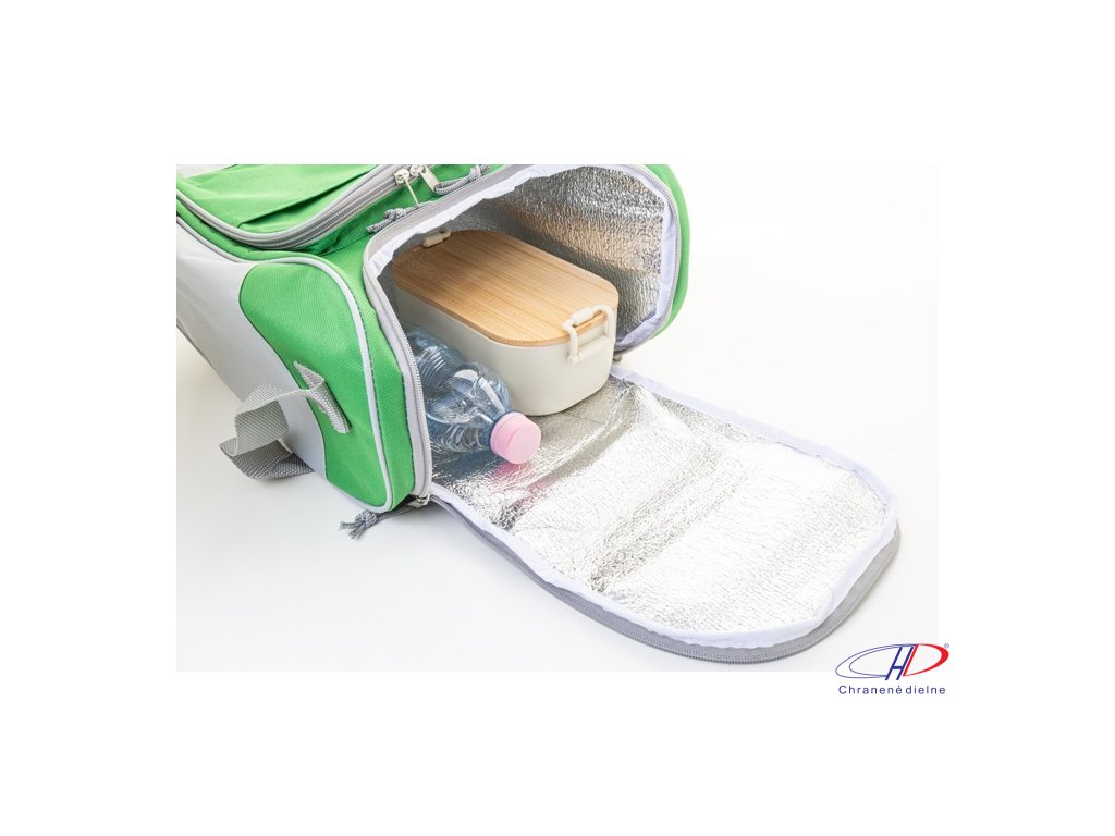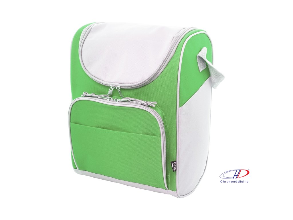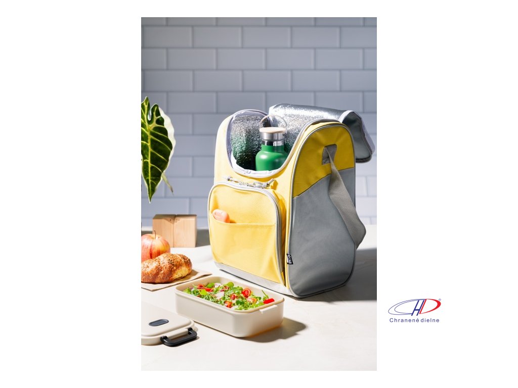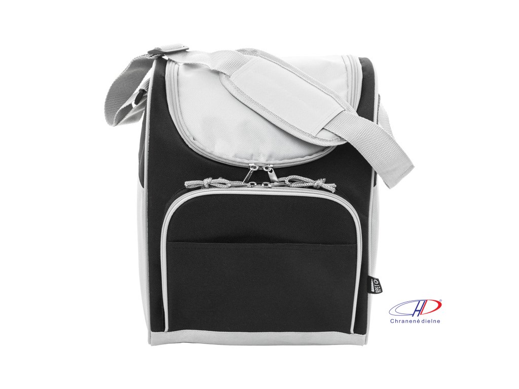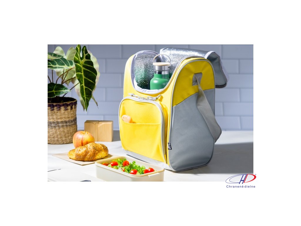 Chladiaca taška RPET s hliníkovým polstrovaním. S 2 priehradkami na zips, malým predným vreckom a nastaviteľným ramenným popruhom. 600D RPET polyester s výrazným štítkom RPET.Dodatočné parametre