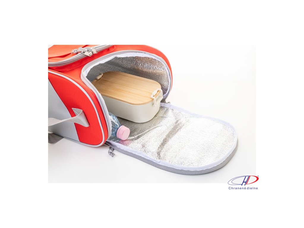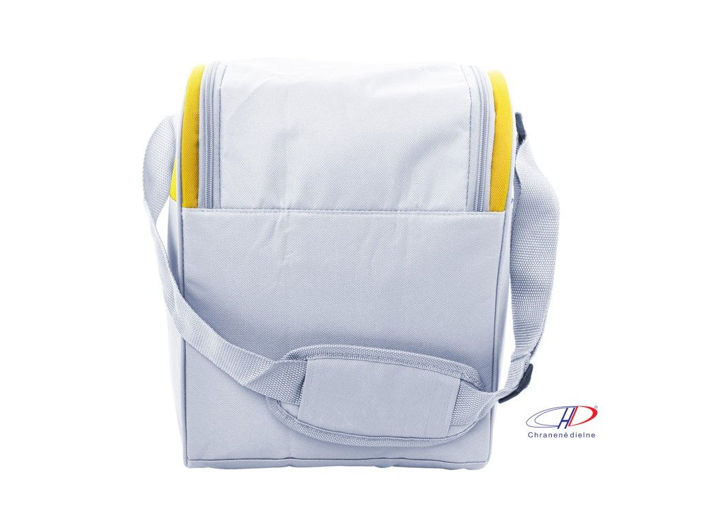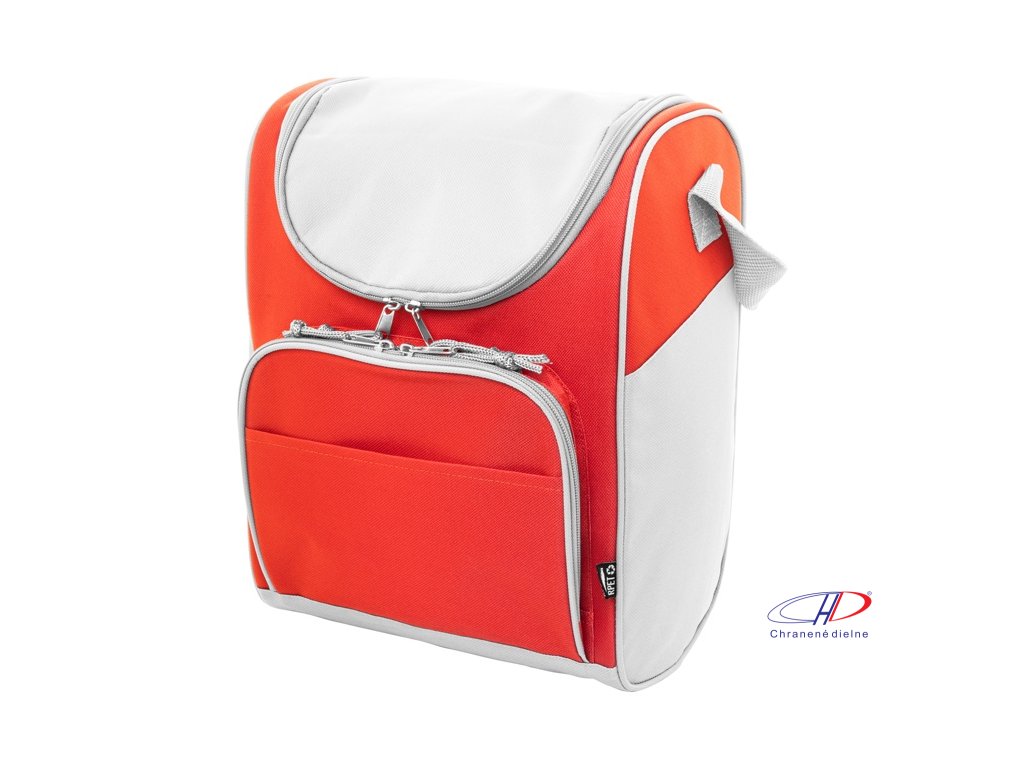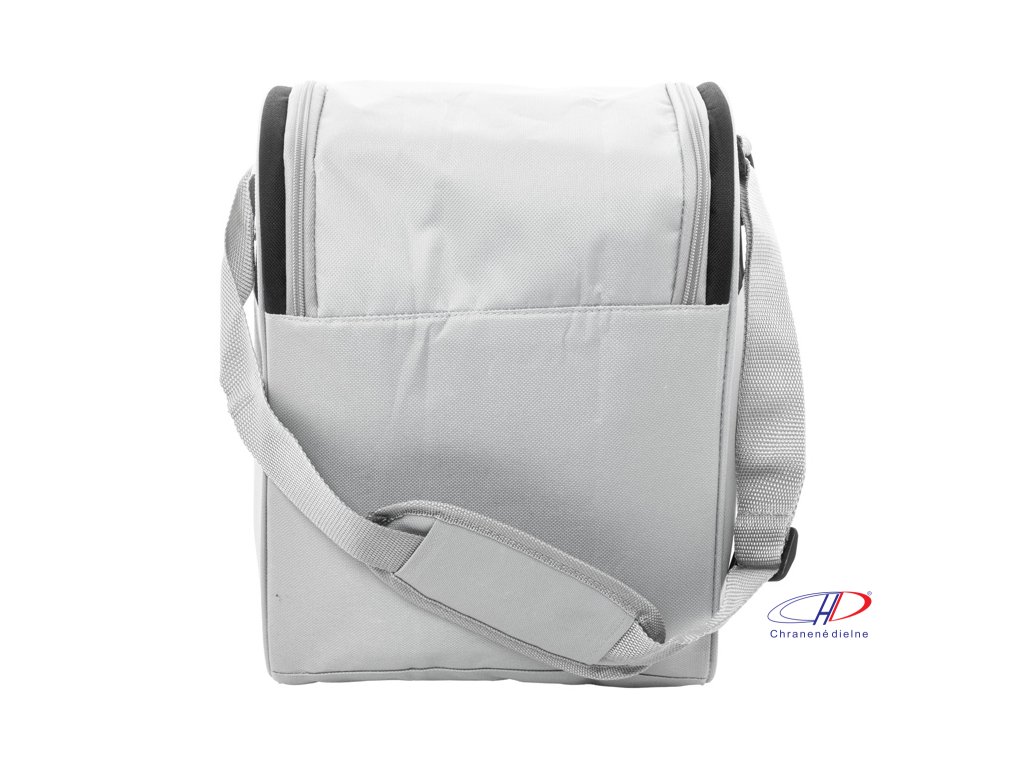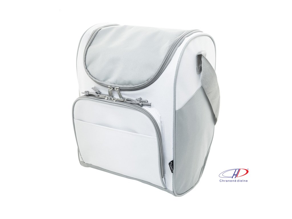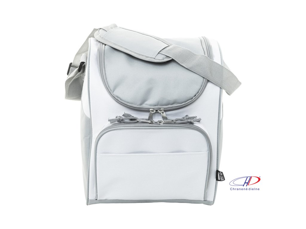 Chladiaca taška RPET s hliníkovým polstrovaním. S 2 priehradkami na zips, malým predným vreckom a nastaviteľným ramenným popruhom. 600D RPET polyester s výrazným štítkom RPET.Dodatočné parametre