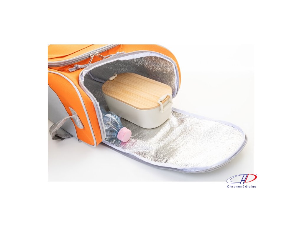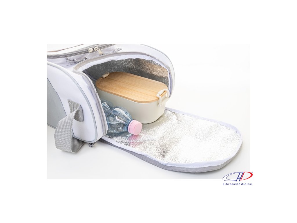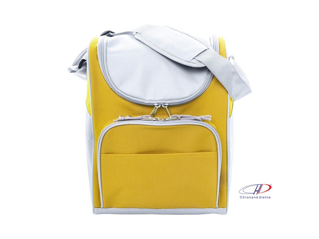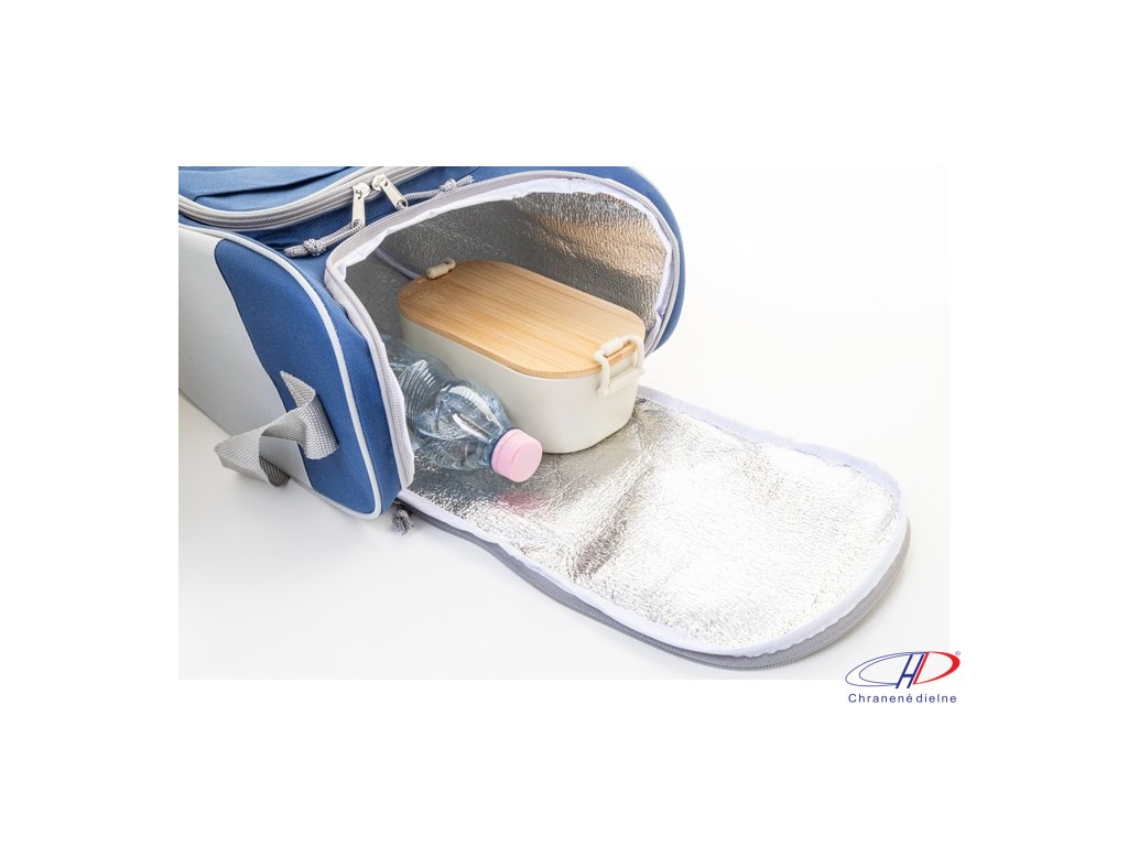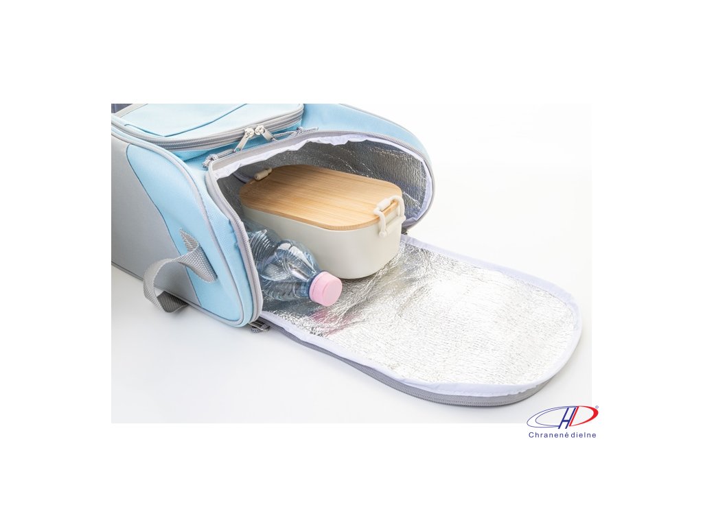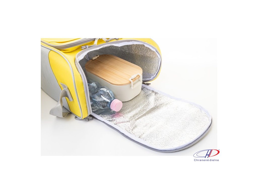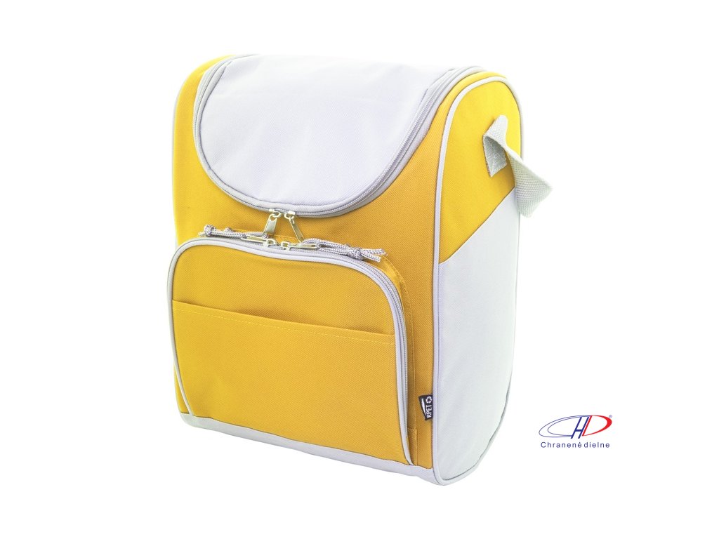Chladiaca taška RPET s hliníkovým polstrovaním. S 2 priehradkami na zips, malým predným vreckom a nastaviteľným ramenným popruhom. 600D RPET polyester s výrazným štítkom RPET.Dodatočné parametre