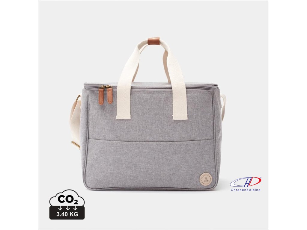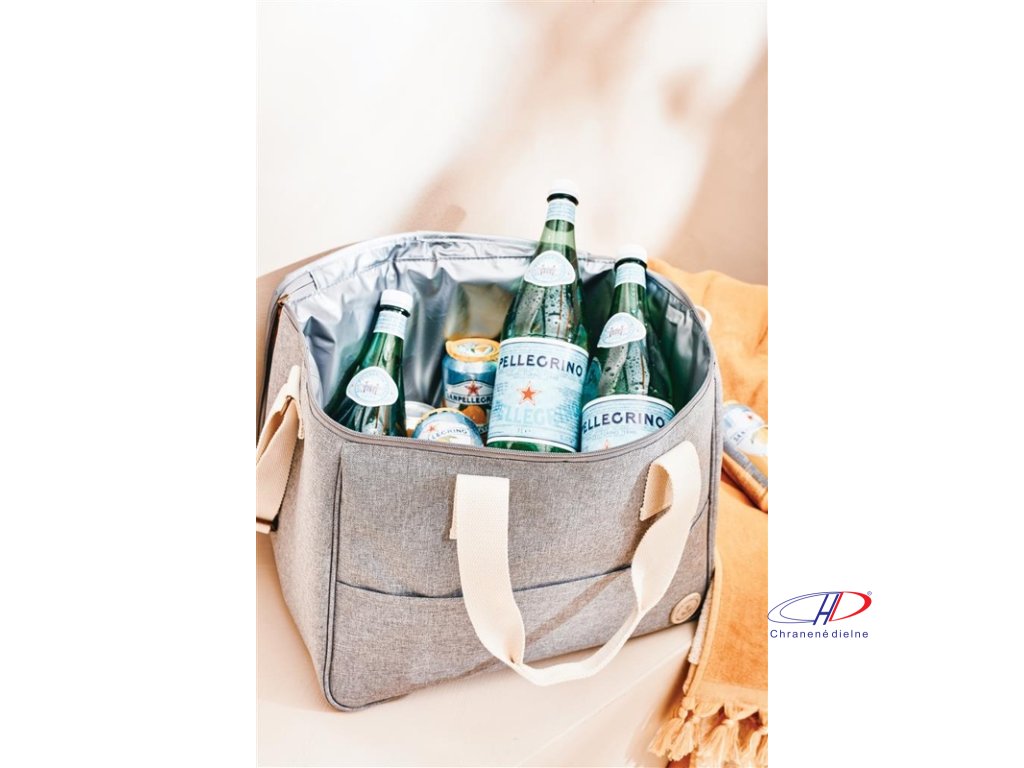 Chladiaci kôš je vyrobený z melanžovej tkaniny s PU detailmi, vďaka ktorým je rovnako módny ako bežná taška. Je vyrobený z 50 % polyesteru z recyklovaných PET fliaš. Podšívka PEVA dlho udržiava chlad a jednoducho sa čistí. Má ramenný popruh a rukoväte.Dodatočné parametre