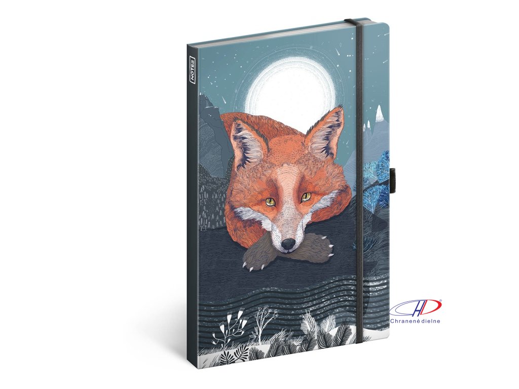 Linajkovaný notes v pevných doskách s uzatváraním na gumičku, pútkom na pero a vnútornou kapsou na navštívenky.