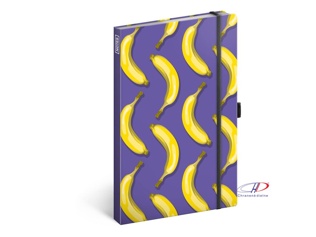 Linajkovaný notes v pevných doskách s uzatváraním na gumičku, pútkom na pero a vnútornou kapsou na navštívenky.