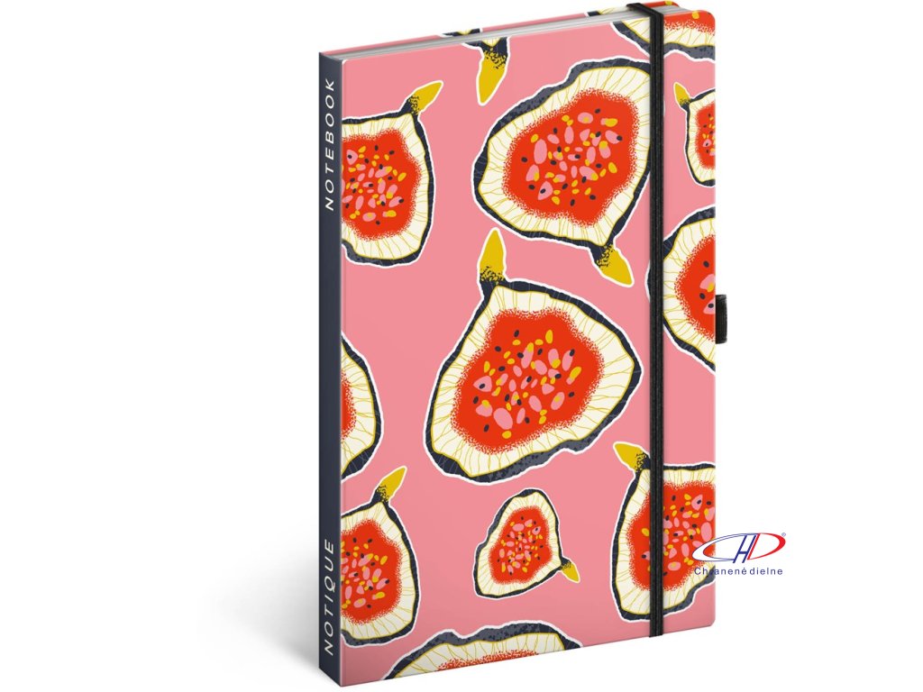 Linajkovaný notes v pevných doskách s uzatváraním na gumičku, pútkom na pero a vnútornou kapsou na navštívenky.