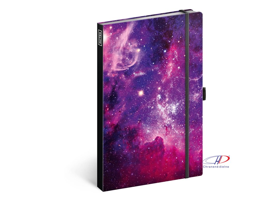 Linajkovaný notes v pevných doskách s uzatváraním na gumičku, pútkom na pero a vnútornou kapsou na navštívenky.