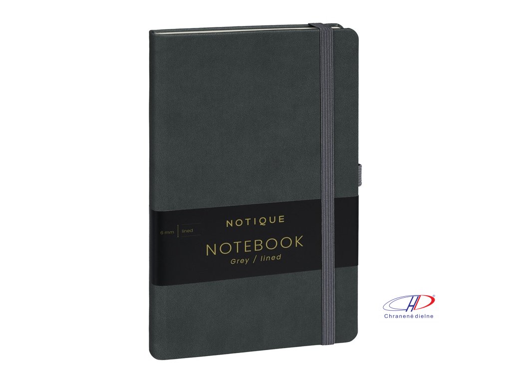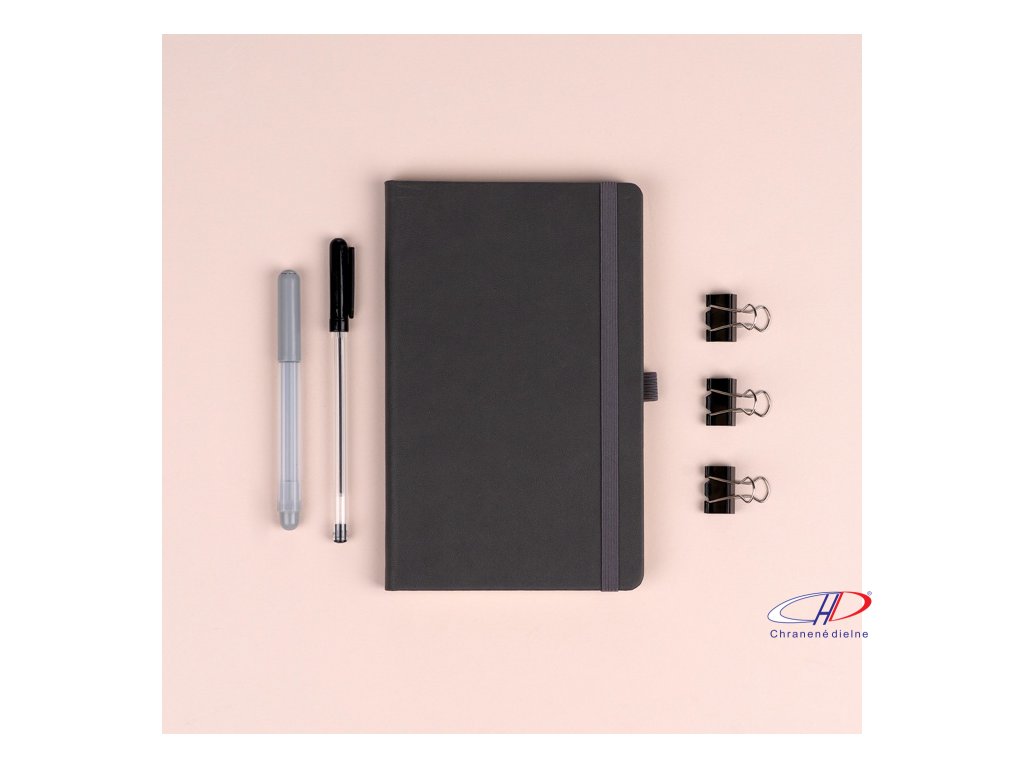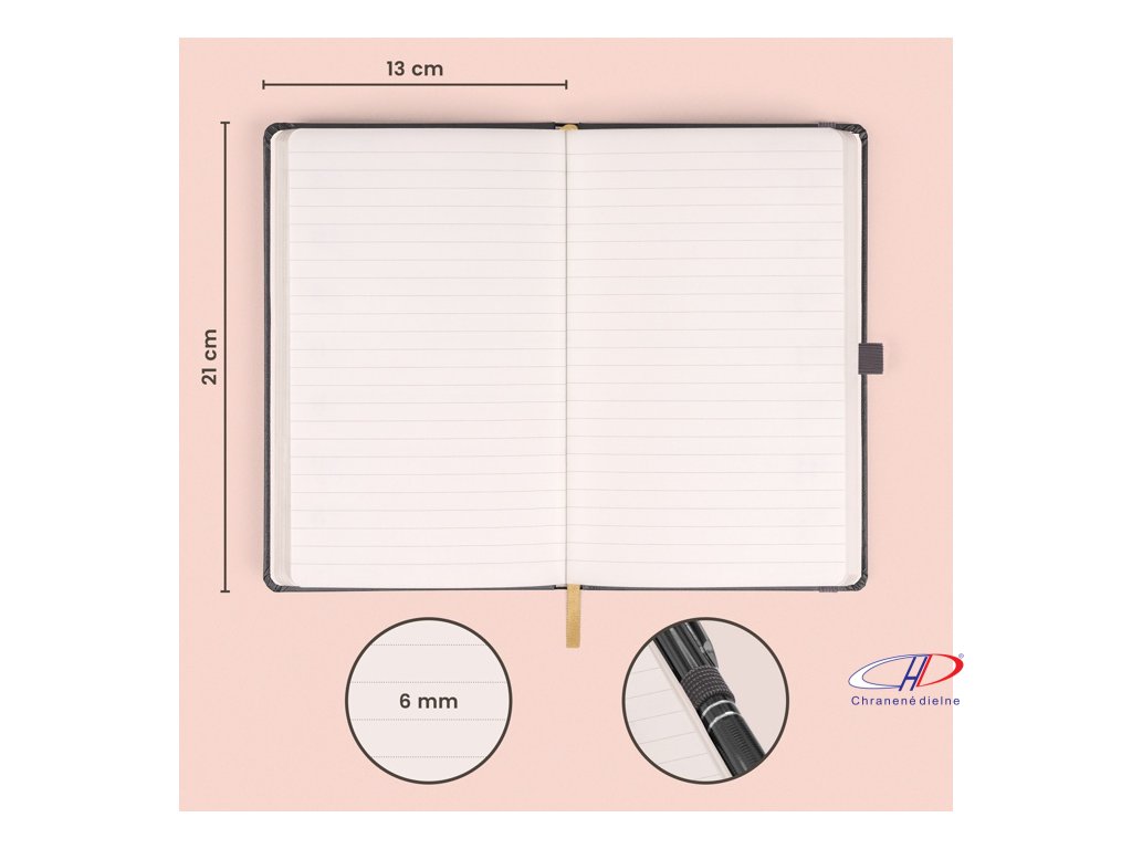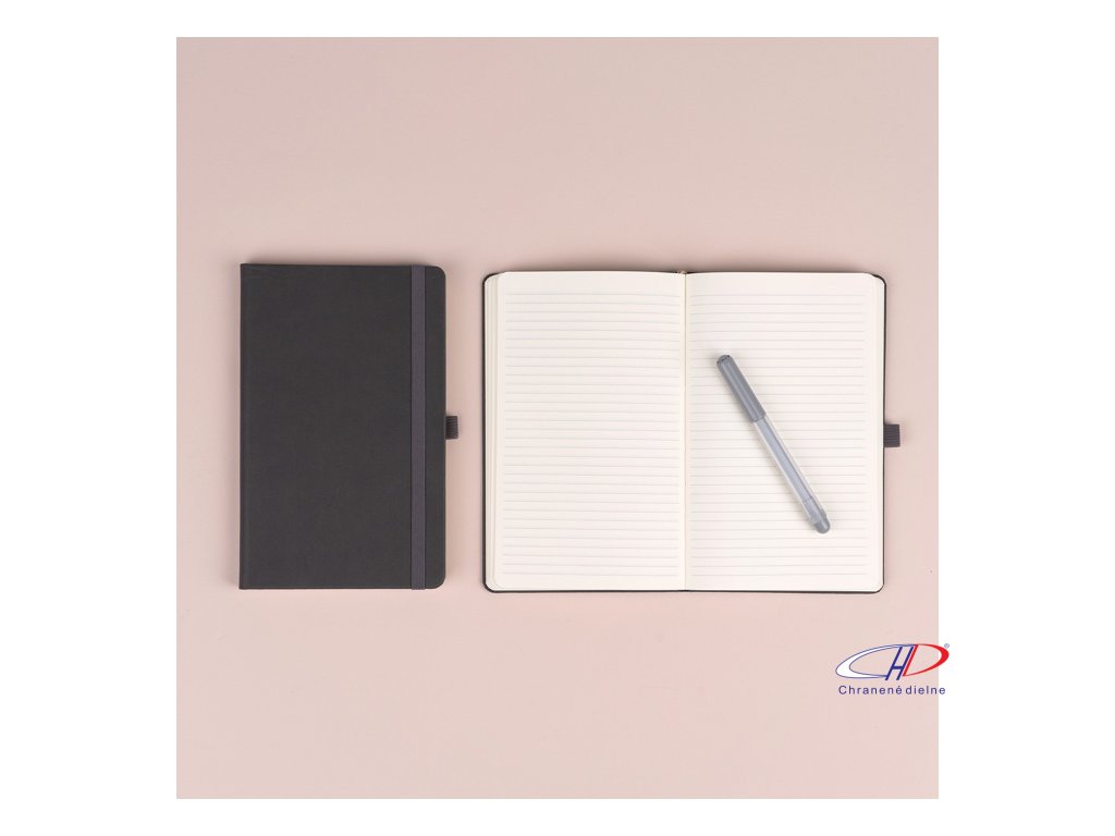 Linajkovaný (6 mm) alebo bodkovaný (5 mm) notes má povrch s hrubšou štruktúrou. Notes má pevnú knižnú väzbu a zaoblené rohy, pútko na pero, elastickú gumičku a textilnú záložku.