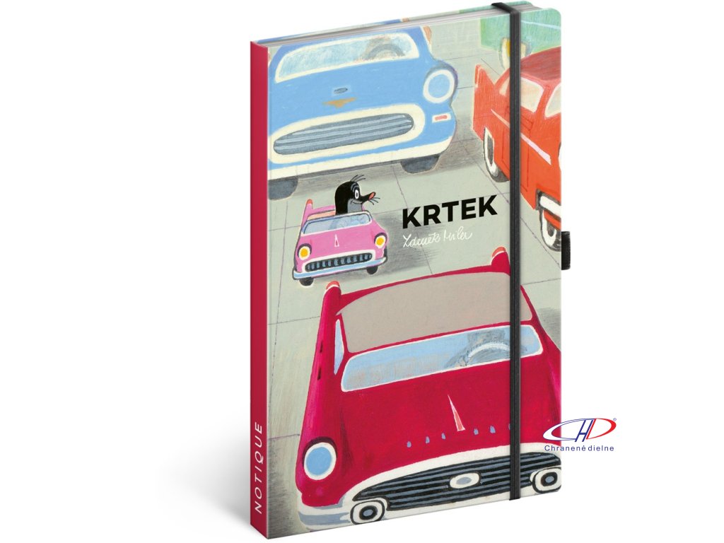 Linajkovaný notes v pevných doskách s uzatváraním na gumičku, pútkom na pero a vnútornou kapsou na navštívenky.