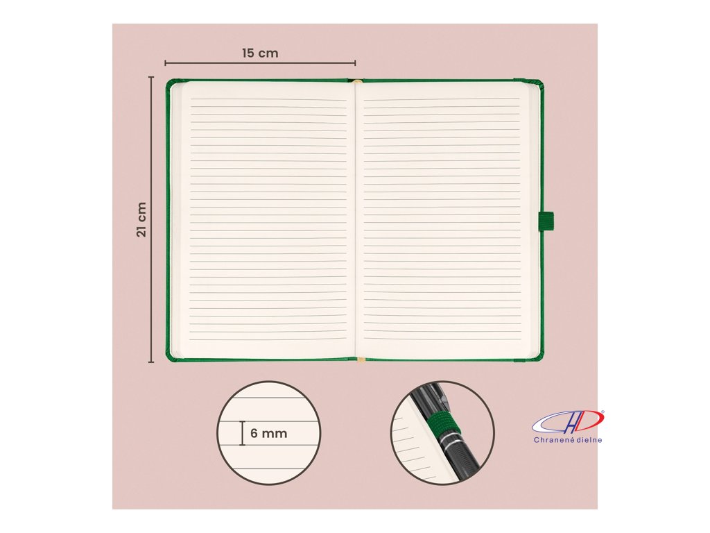 Linajkový notes Aprint. Klasika i elegancia, najžiadanejší povrch, na ktorý možno ľahko vyraziť firemné logá s jemnou štruktúrou. Pevná väzba s oblými rohami, pútko na pero, silná gumička, všitá záložka a vnútorné vrecko, 192 strán.