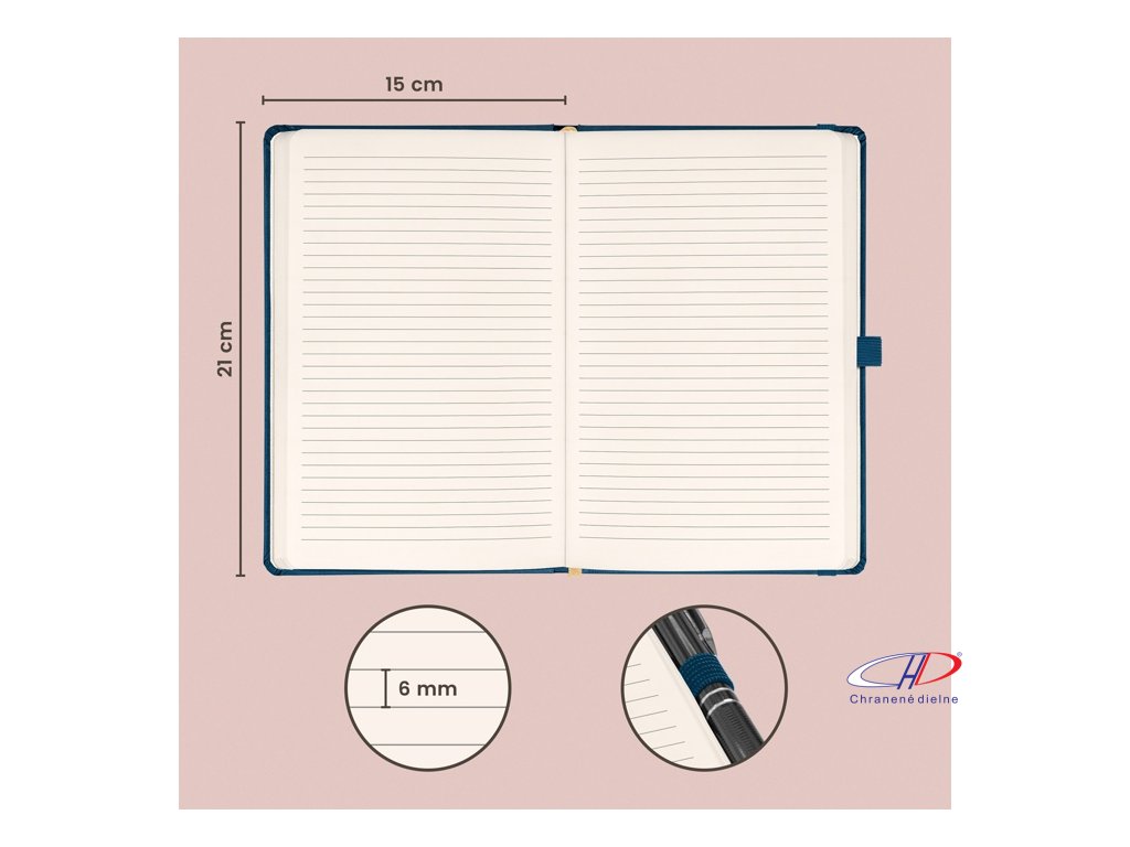 Linajkový notes Aprint Neo. Klasika i elegancia, najžiadanejší povrch, na ktorý je možnosť vyraziť firemné logá s jemnou štruktúrou. Pevná väzba s oblými rohami, pútko na pero, silná gumička, všitá záložka a vnútorné vrecko, 192 strán.