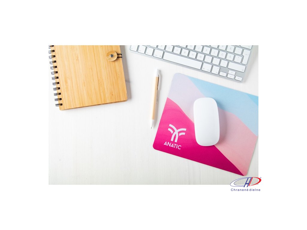 Sublimačná podložka pod myš z polyesteru s gumovou protišmykovou základňou.