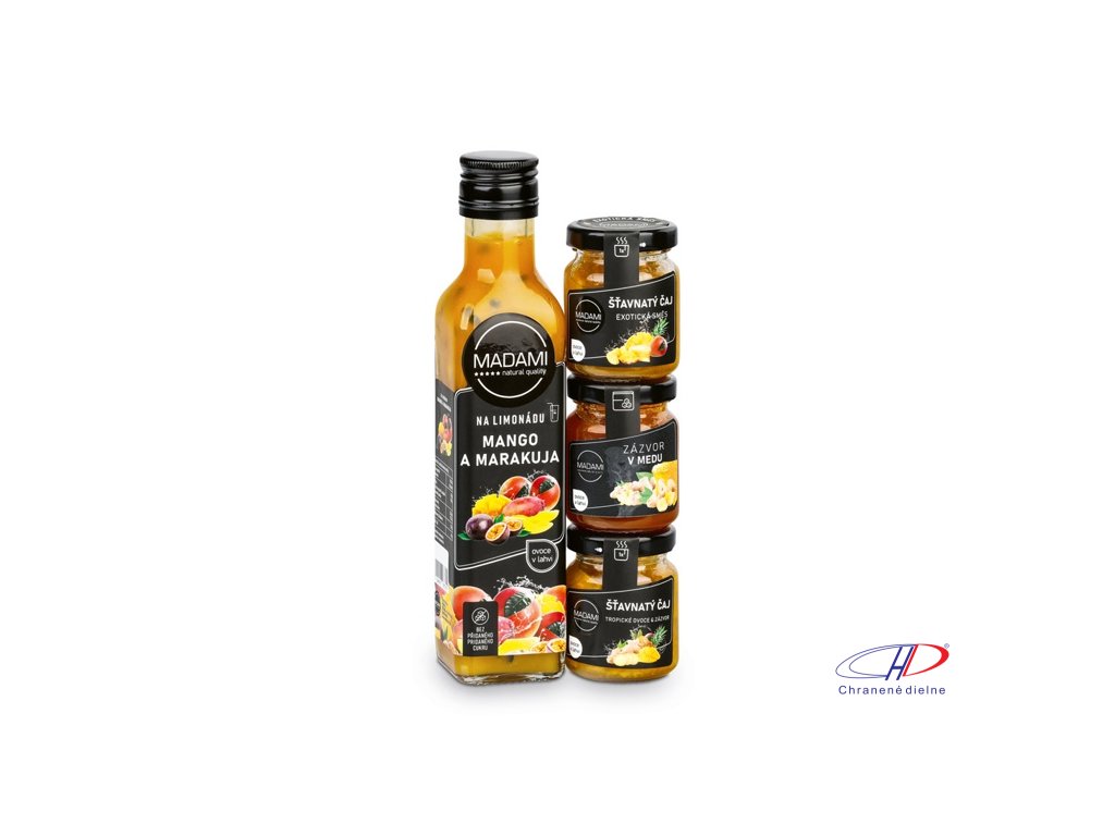 Exotická darčeková sada, obsahuje ovocný koncentrát Mango a marakuju (250 ml), Zázvor v mede (68 g), Citrusovú zmes (55 ml) a Exotickú zmes (55 ml). V prípade záujmu o viac ako 10 kusov nás kontaktujte ohľadom cenovej ponuky.Dodatočné parametre