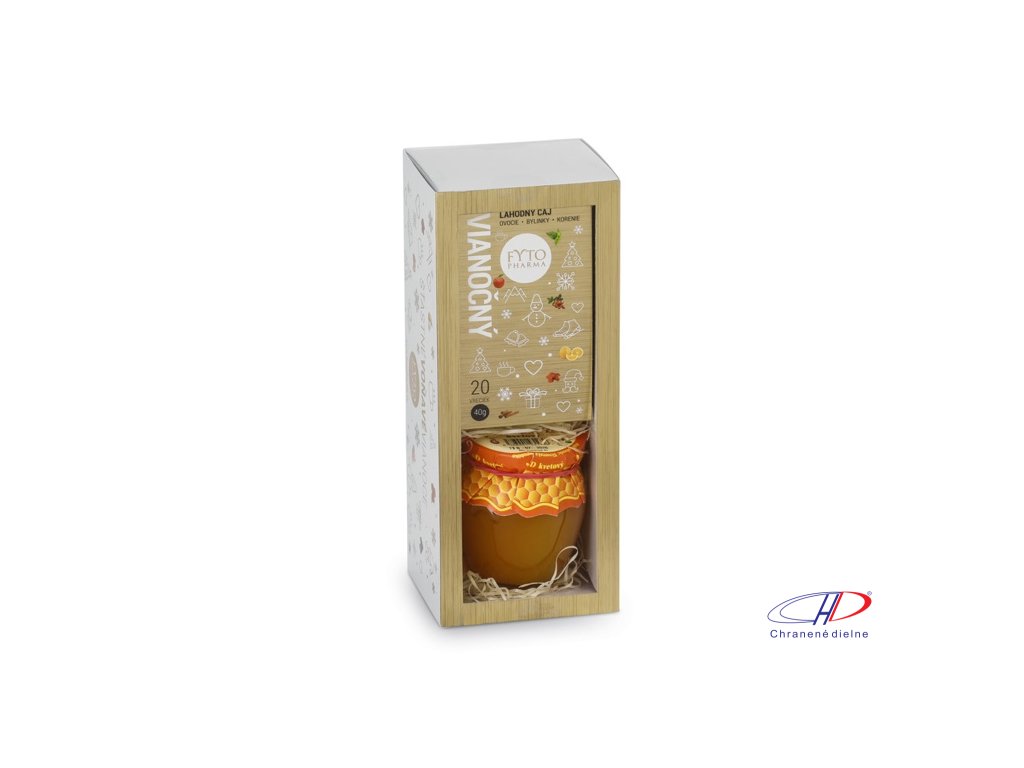 Darčeková sada s vianočným čajom a medom, obsahuje porciovaný čaj (20 vrecúšok) a kvetový med (250 g). V prípade záujmu o viac ako 10 kusov nás kontaktujte ohľadom cenovej ponuky.Dodatočné parametre
