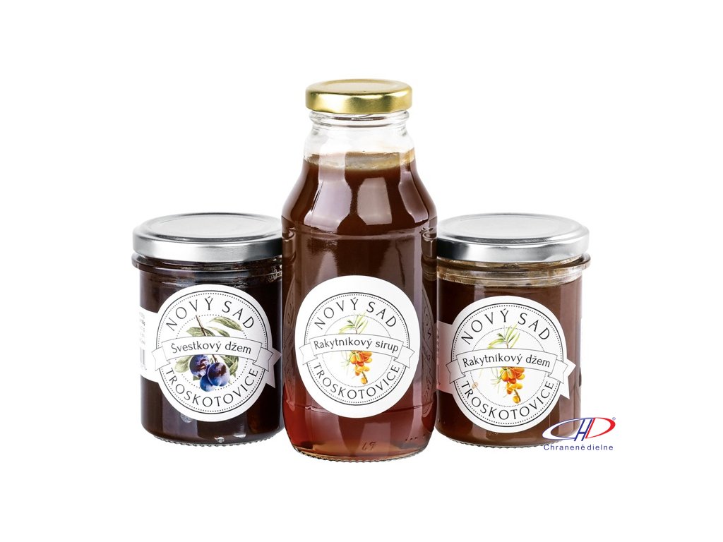 Darčeková sada s rakytníkovým sirupom (330 ml), rakytníkovým džemom (200 g) a slivkovým lekvárom (200 g). V prípade záujmu o viac ako 10 kusov nás kontaktujte ohľadom cenovej ponuky.Dodatočné parametre