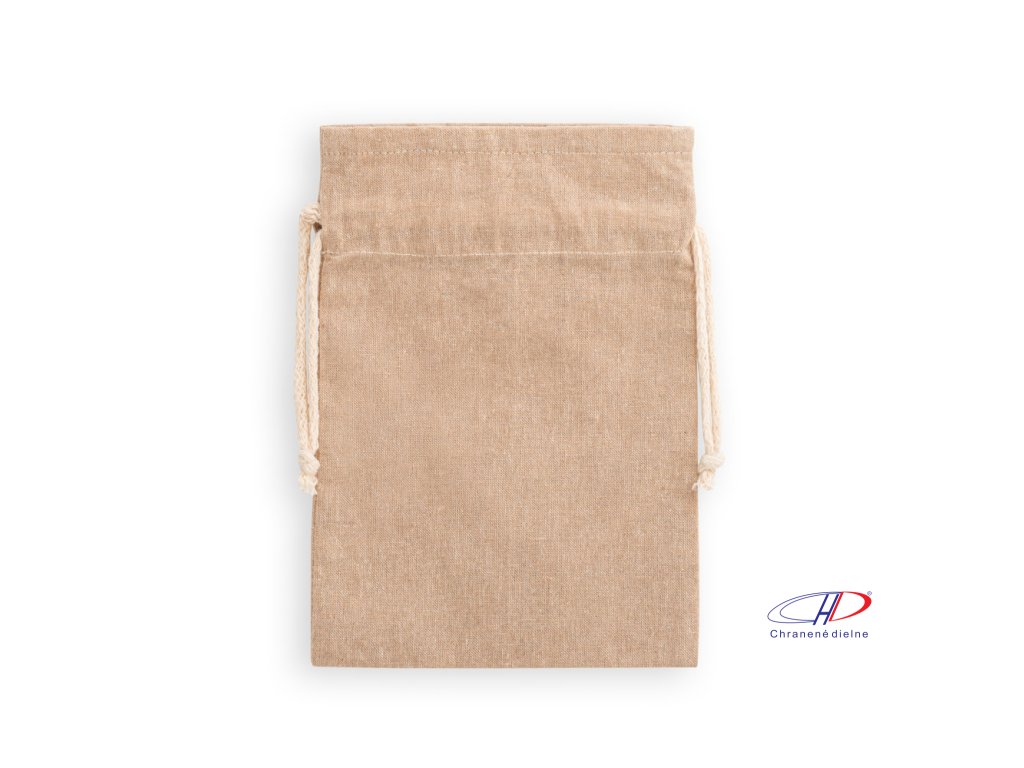 Darčekové vrecúško z recyklovanej bavlny (70 %), polyesteru (30 % RET). Recyklovaná bavlna je nefarbená. Surovina sa používa vo svojej pôvodnej forme a farbe, bez použitia farbív alebo bieliacich chemikálií, čo prispieva k nižšiemu vplyvu.Dodatočné parametre