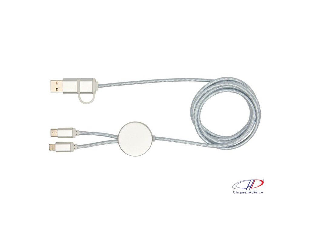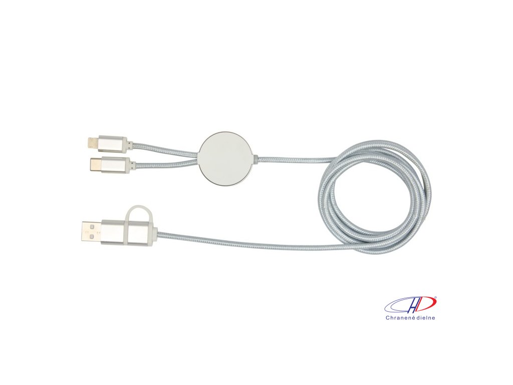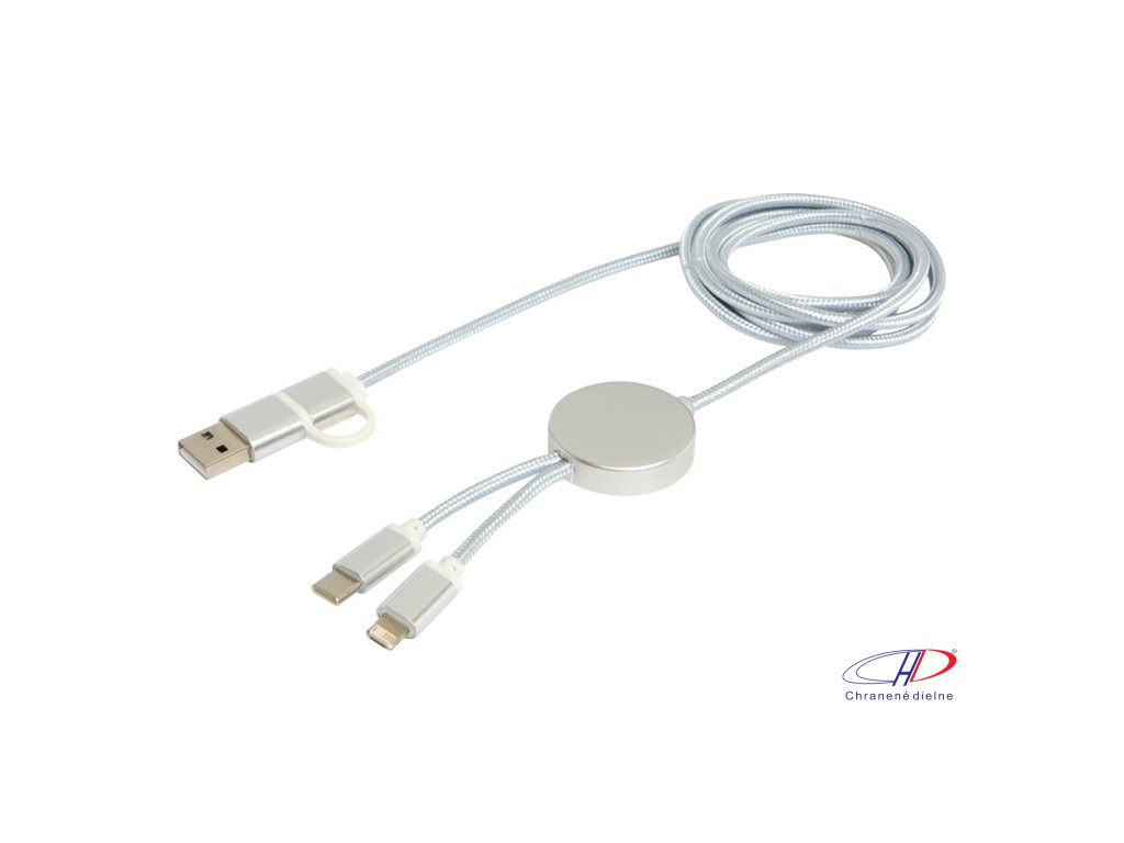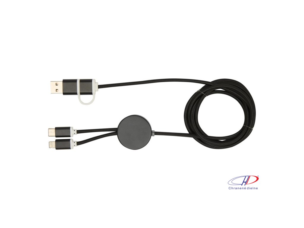27W dátový synchronizačný kábel 5v1 pre rýchle nabíjanie. Vstupný konektor USB-A a USB-C, výstupný USB-C a Lightning/Micro USB. USB-A na USB-C výstupný výkon max 27W a ostatné pripojenia max 15W. Kompatibilný s CarPlay and Android Auto. Dĺžka: 150 cm.Dodatočné parametre