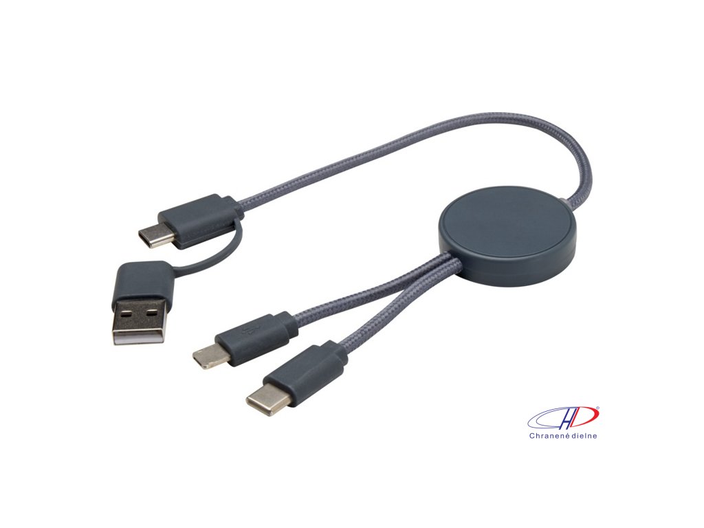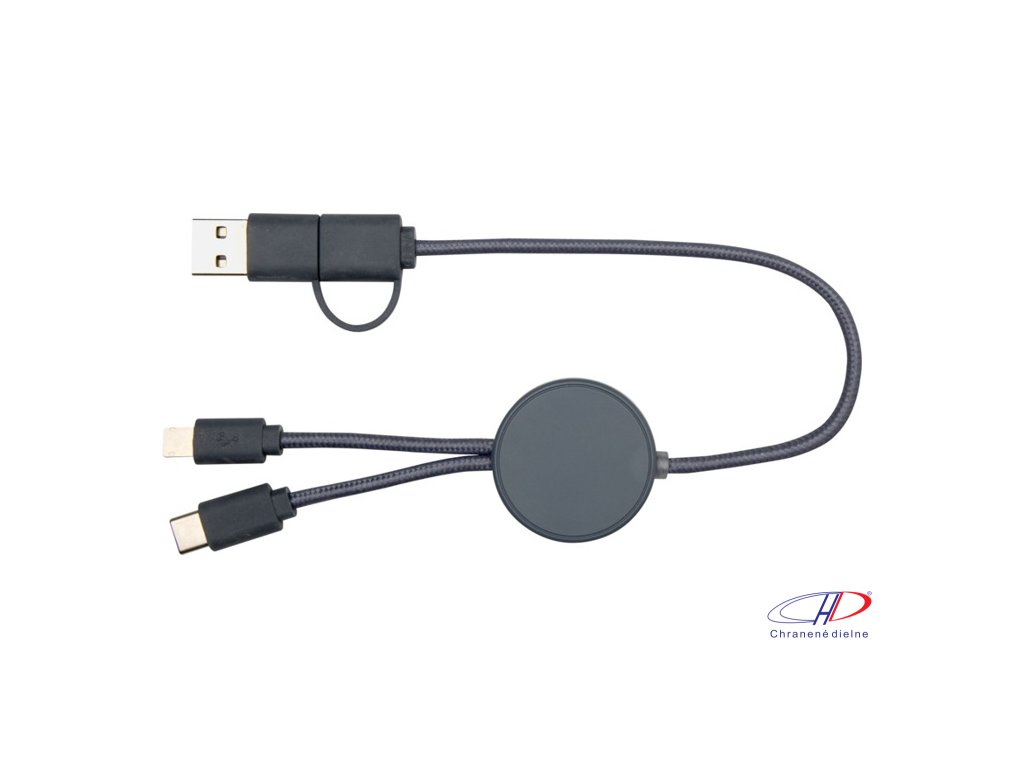 27W dátový synchronizačný kábel 5v1 pre rýchle nabíjanie. Vstupný konektor USB-A a USB-C, výstupný USB-C a Lightning/Micro USB. USB-A na USB-C výstupný výkon max 27W a ostatné pripojenia max 15W. Kompatibilný s CarPlay and Android Auto. Dĺžka: 30 cm.Dodatočné parametre