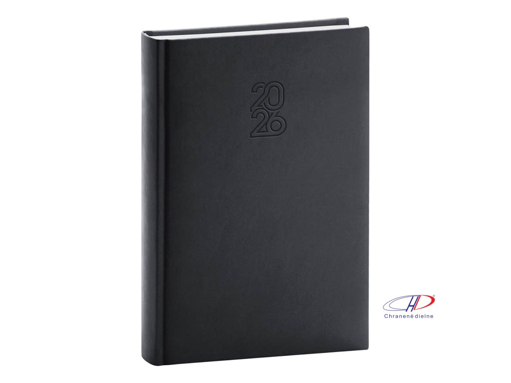 MINIMÁLNY ODBER 2 kusy. Väzba: tuhá knižná. Kalendárium: CZ/SK/GB/DE/HU/RU. Mesačný a ročný kalendár 2026/2027, pracovný kalendár, sviatky, osobné údaje, textilná záložka, perforované rožky, priestor na poznámkyDodatočné parametre