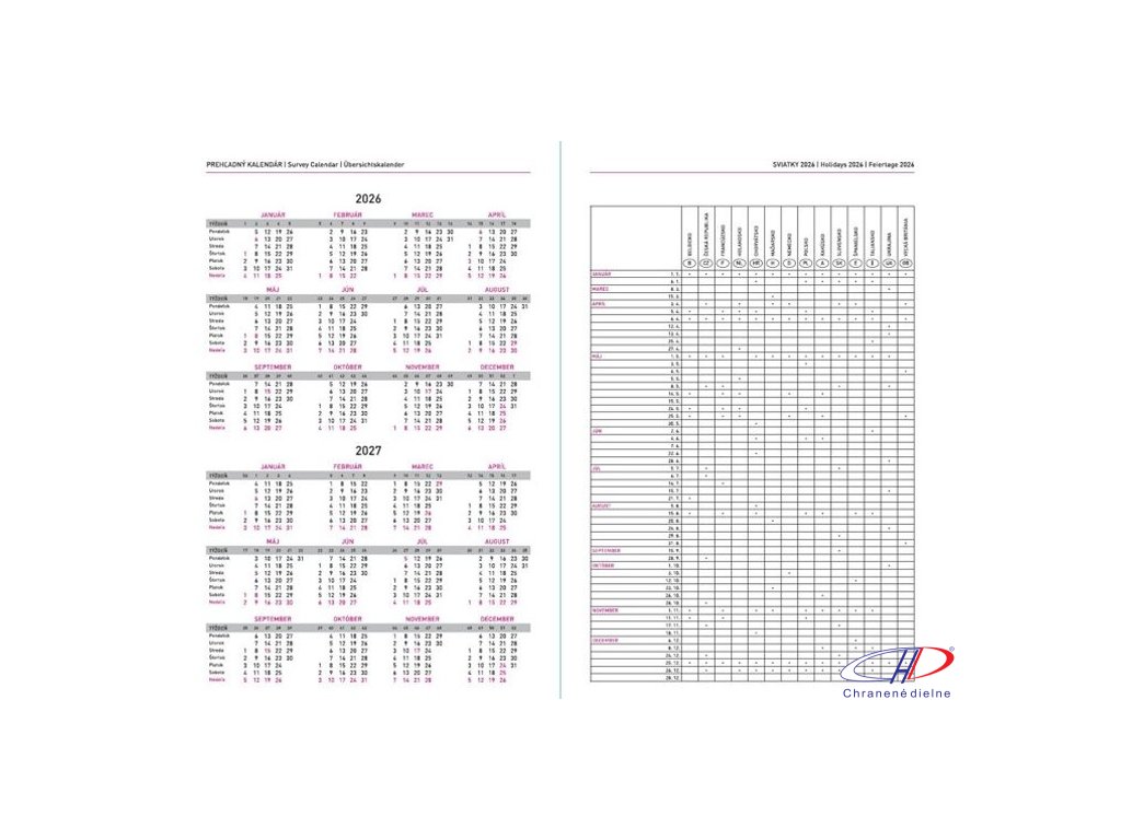 Slovenské denné kalendárium A5 s textilnou záložkou s perforovanými rožkami a doplnené informačnými stranami (poznámkový kalendár, osobné údaje, sviatky, plánovací kalendár, zoznam mien, časové pásma, prevodník jednotiek a veľkostí, adresár, poznámky)Dodatočné parametre