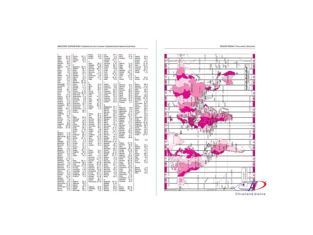Slovenské denné kalendárium A5 s textilnou záložkou s perforovanými rožkami a doplnené informačnými stranami (poznámkový kalendár, osobné údaje, sviatky, plánovací kalendár, zoznam mien, časové pásma, prevodník jednotiek a veľkostí, adresár, poznámky)Dodatočné parametre