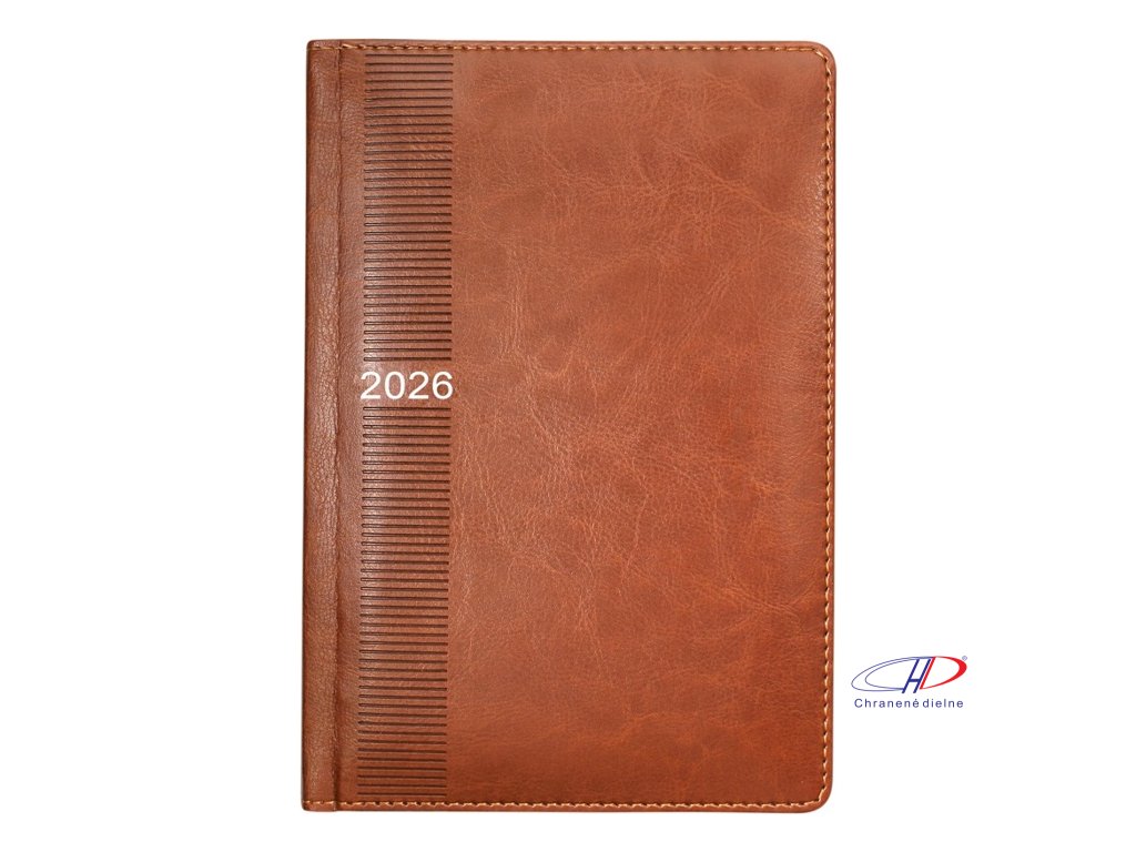 Slovenské denné kalendárium A5 s textilnou záložkou s perforovanými rožkami a doplnené informačnými stranami (poznámkový kalendár, osobné údaje, sviatky, plánovací kalendár, zoznam mien, časové pásma, prevodník jednotiek a veľkostí, adresár, poznámky)Dodatočné parametre