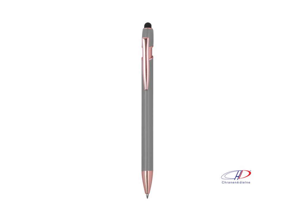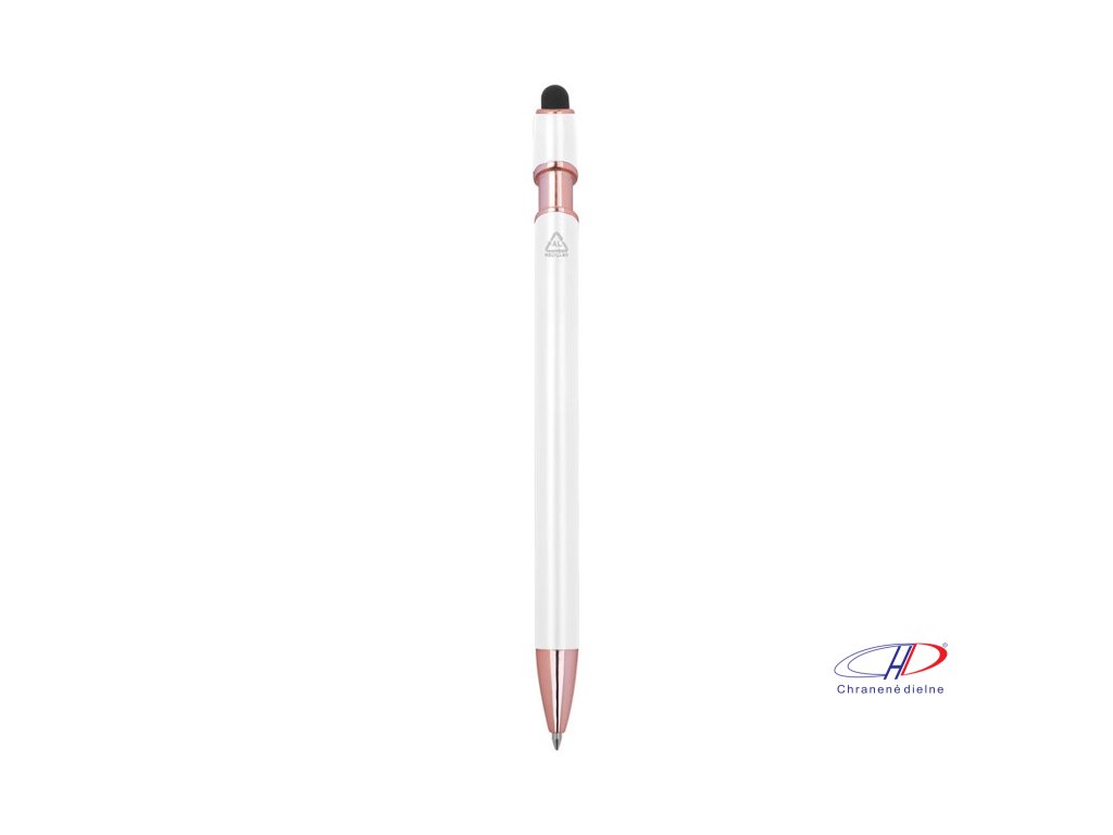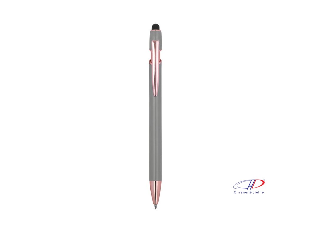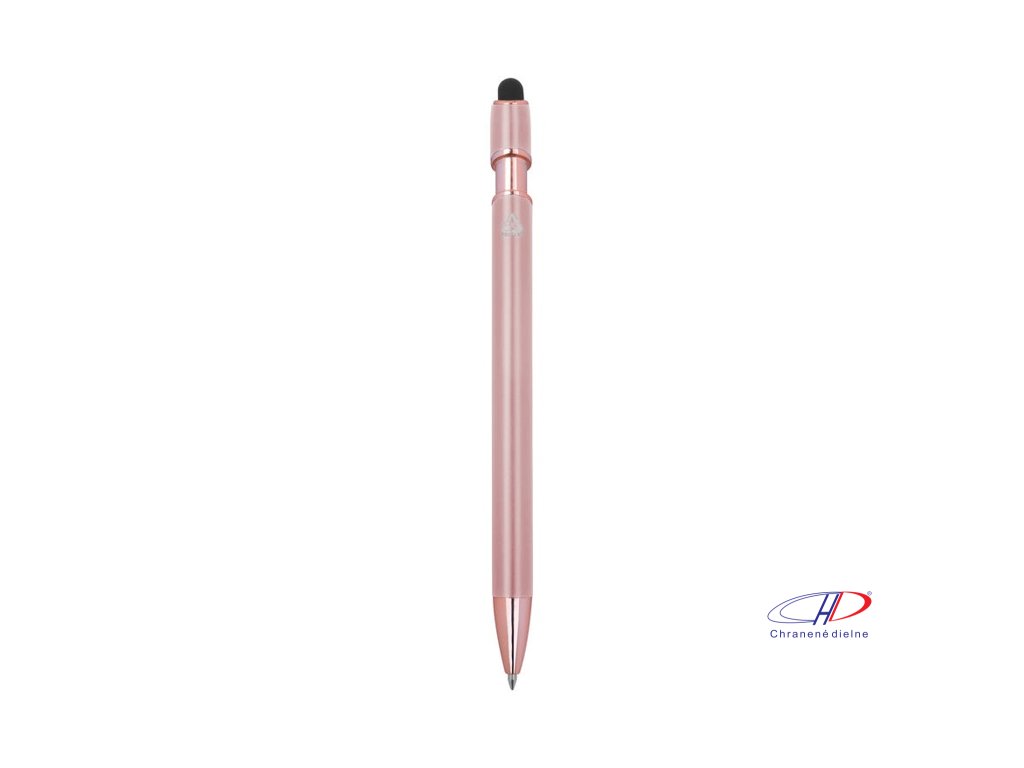 Pologelové pero z recyklovaného hliníka s dotykovým stylusom a modrým gélovým atramentom, veľkokapacitná náplň s hrotom 1 mm.Dodatočné parametre
