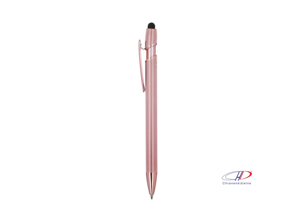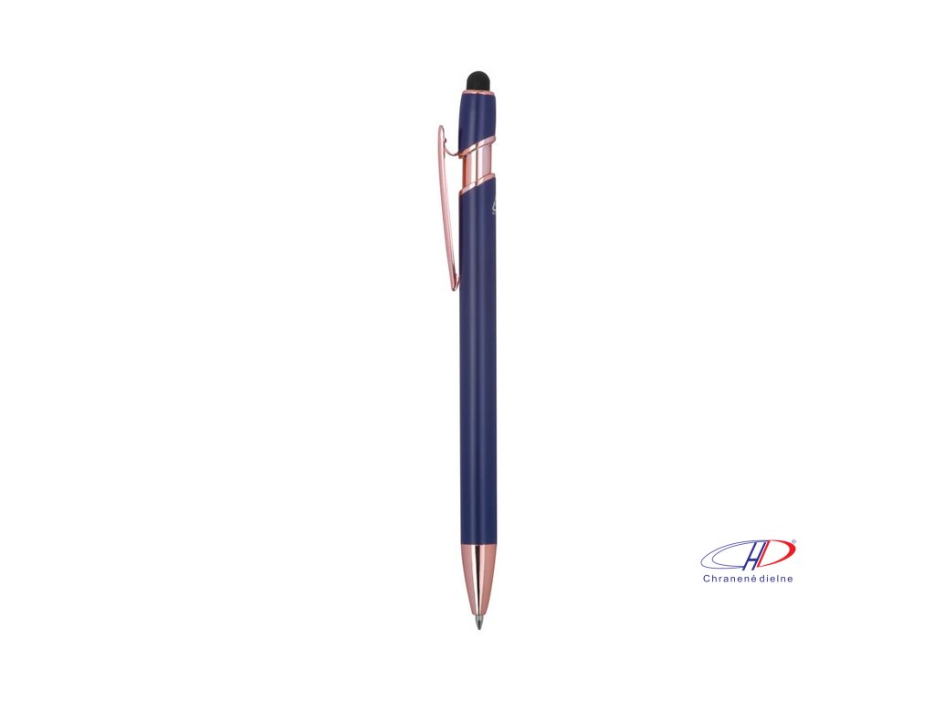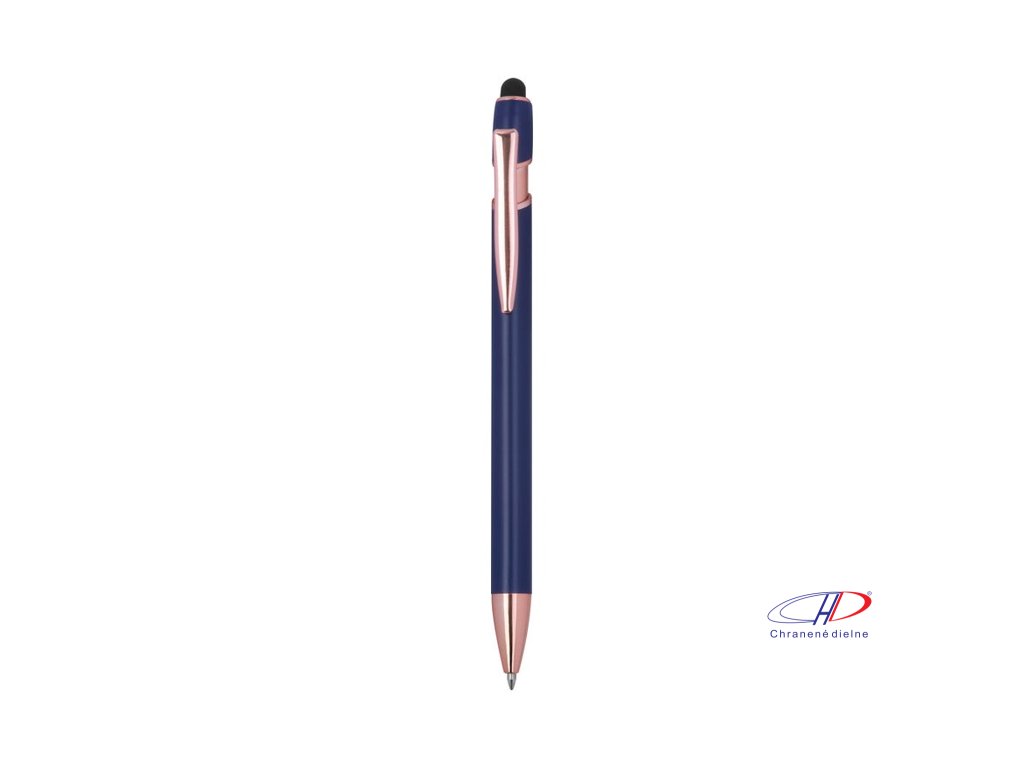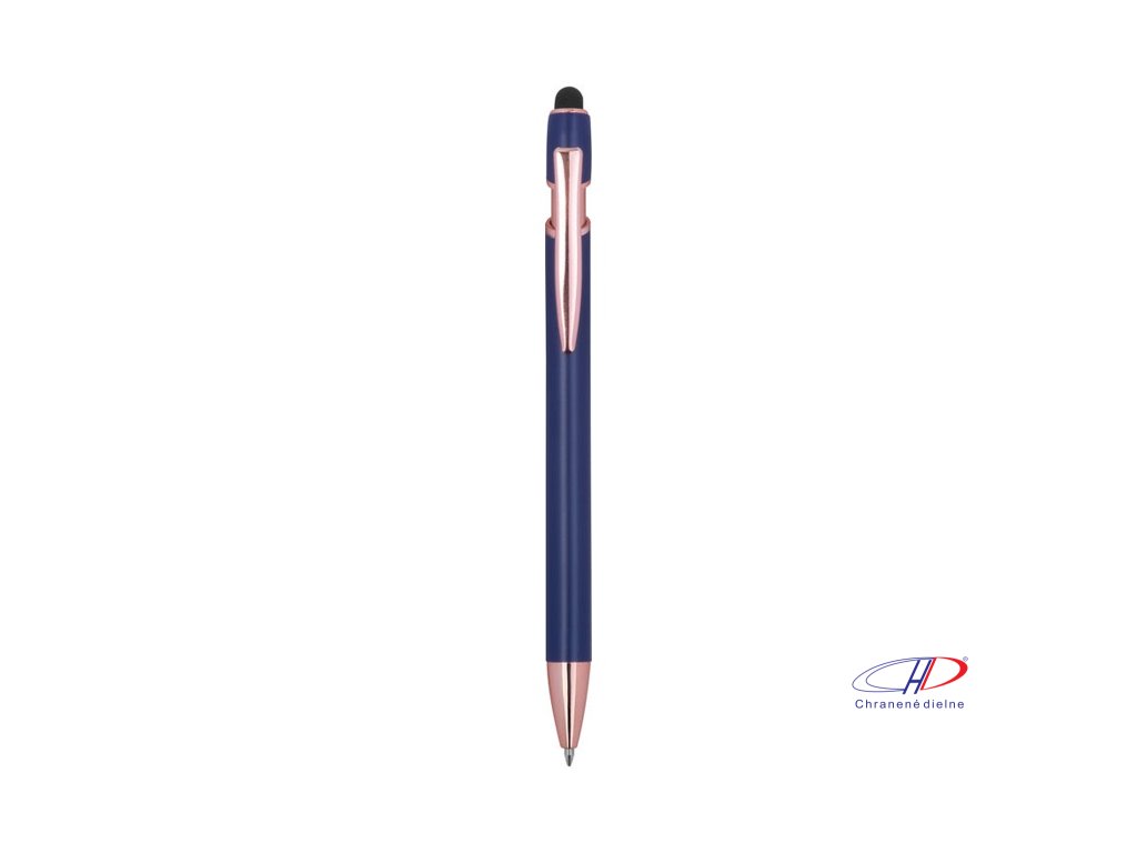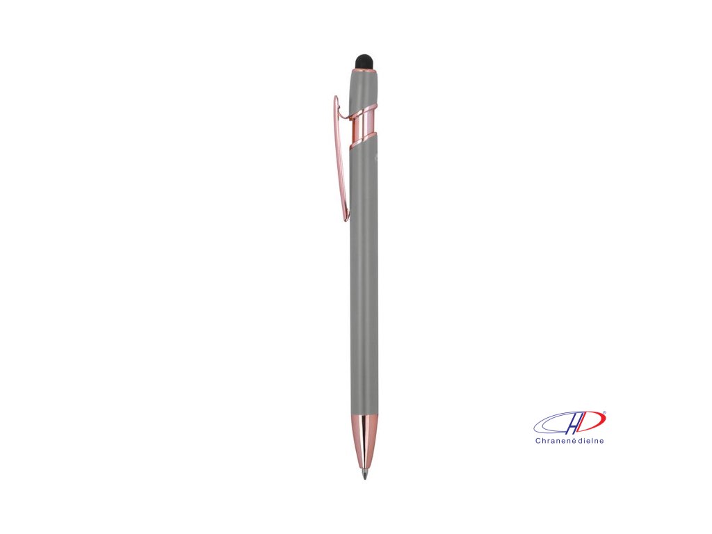 Pologelové pero z recyklovaného hliníka s dotykovým stylusom a modrým gélovým atramentom, veľkokapacitná náplň s hrotom 1 mm.Dodatočné parametre