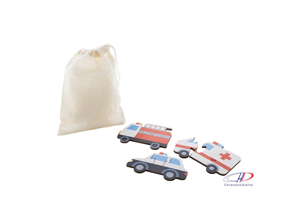 Detská sada puzzle z brezovej preglejky s 3 tematickými motívmi. V bavlnenom prepravnom vrecku.Dodatočné parametre