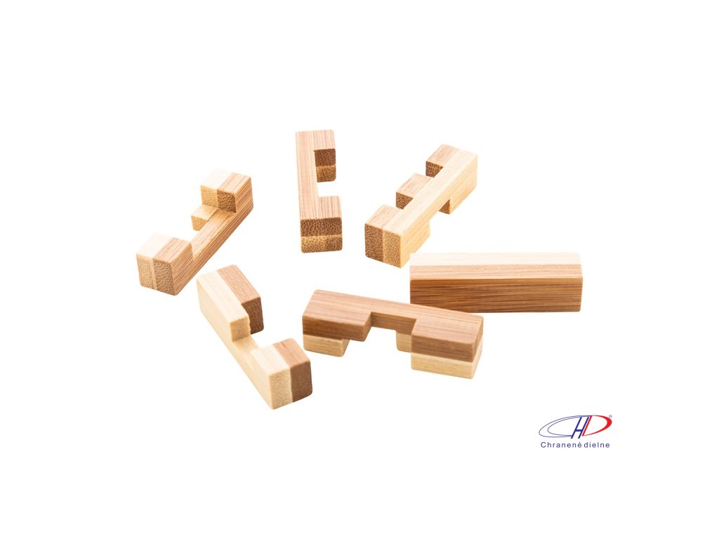Bambusový hlavolam v kraftovej papierovej krabičke.Dodatočné parametre