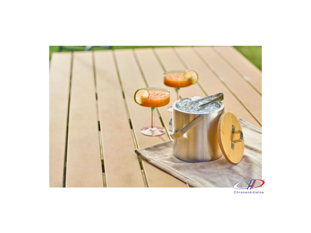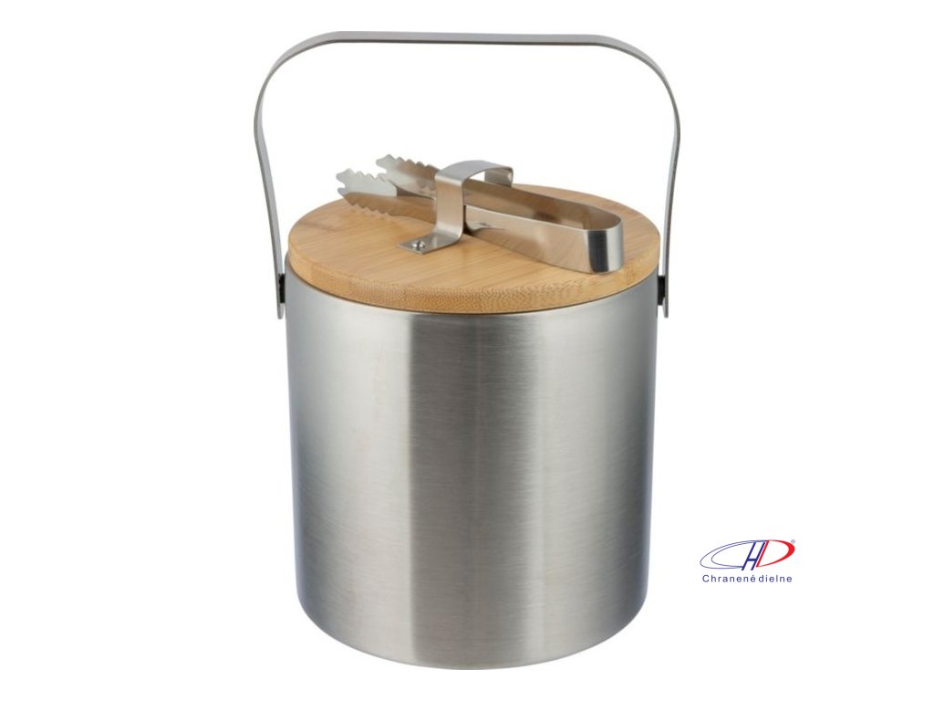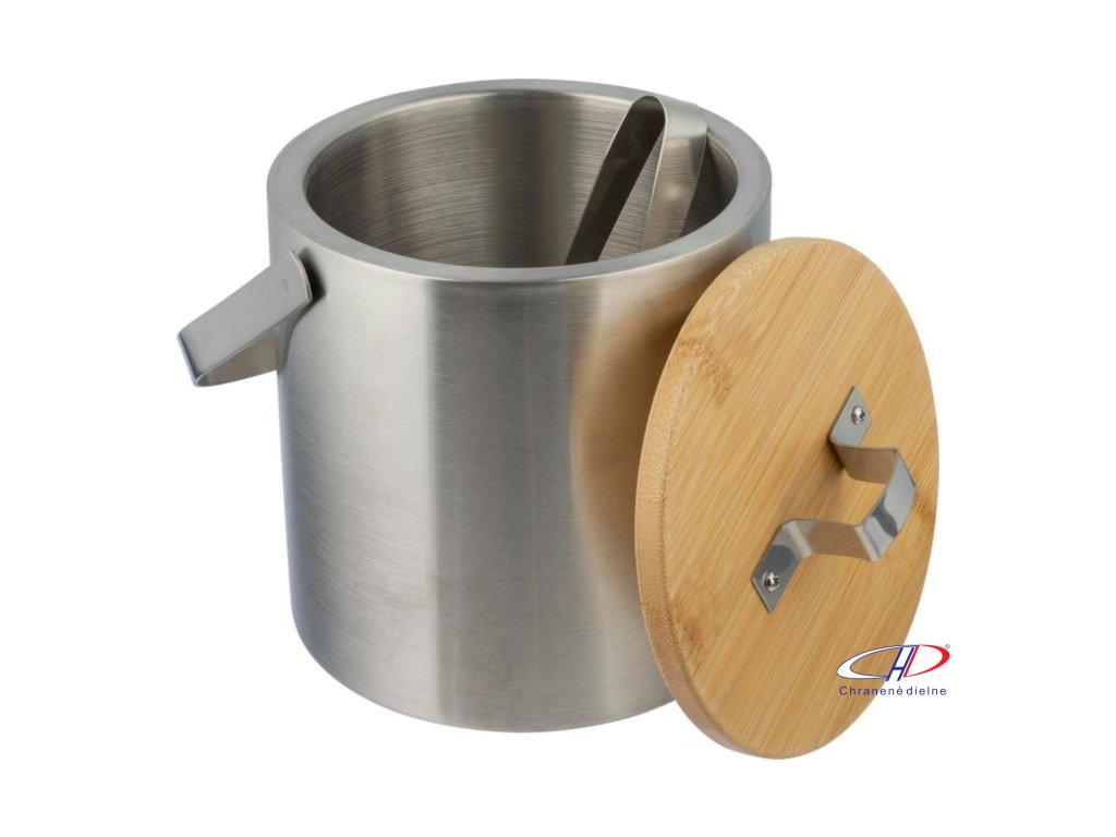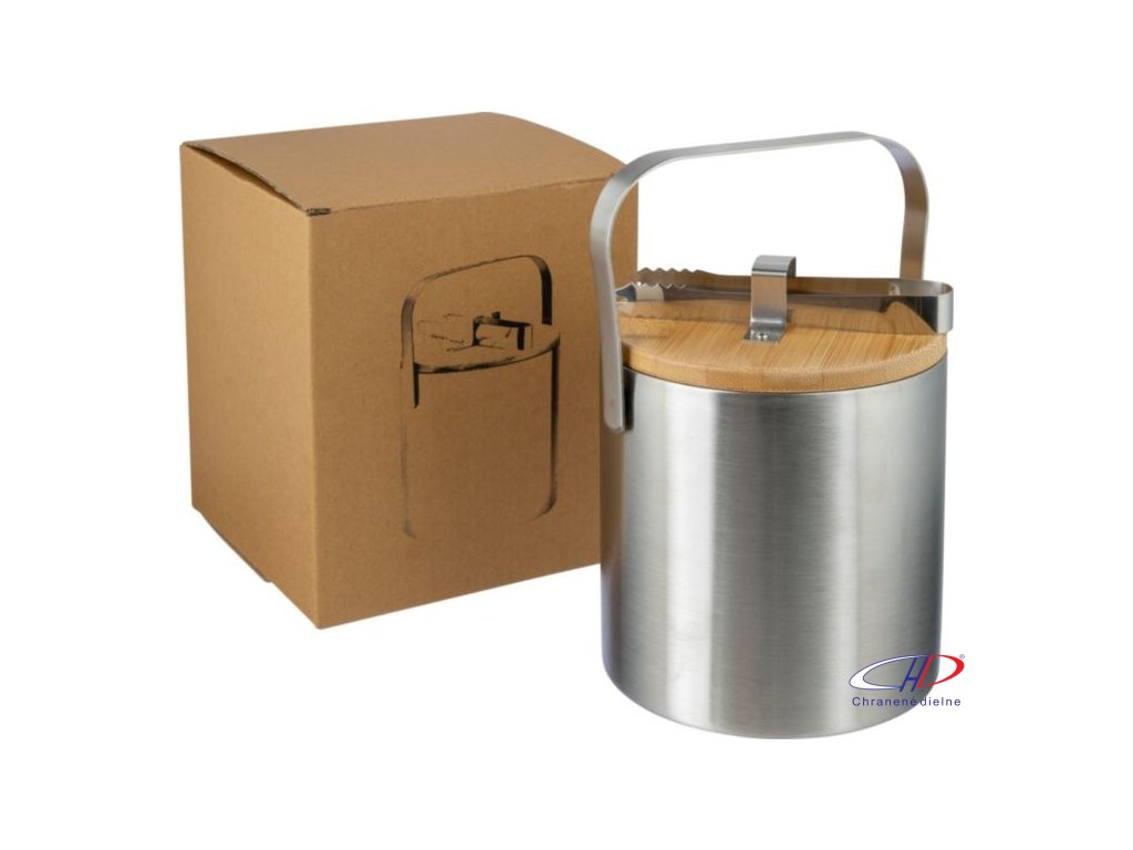 Vedro na ľad s dvojitou stenou, bambusovým vekom a rukoväťou. Vnútorná strana je vyrobená z nehrdzavejúcej ocele 304 a vonkajšia strana z nehrdzavejúcej ocele 201. Súčasťou balenia sú kliešte na ľad. Objem 1200 ml. Jednotlivo balené v hnedej kartónovej krabici.Dodatočné parametre
