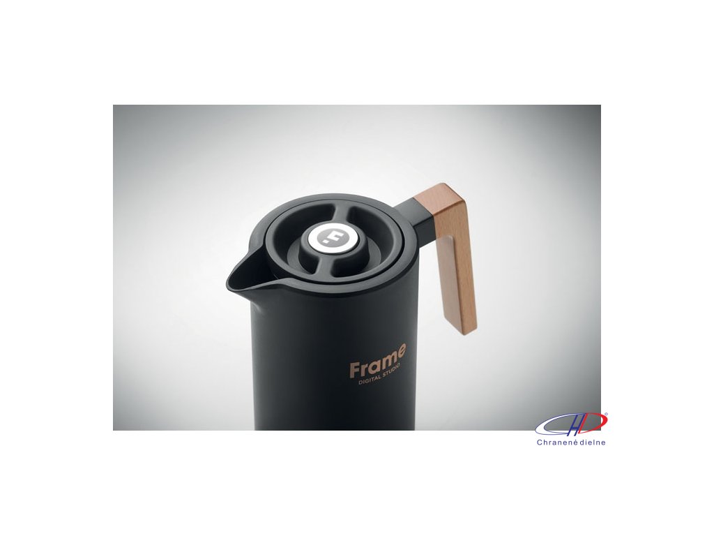 Dvojstenná izolovaná vákuová kanvica z recyklovanej nehrdzavejúcej ocele (90 % recyklovanej nehrdzavejúcej ocele a 10 % nehrdzavejúcej ocele) vo vnútri a vonkajšia stena z PP s drevenou rukoväťou. Objem: 1 l.Dodatočné parametre