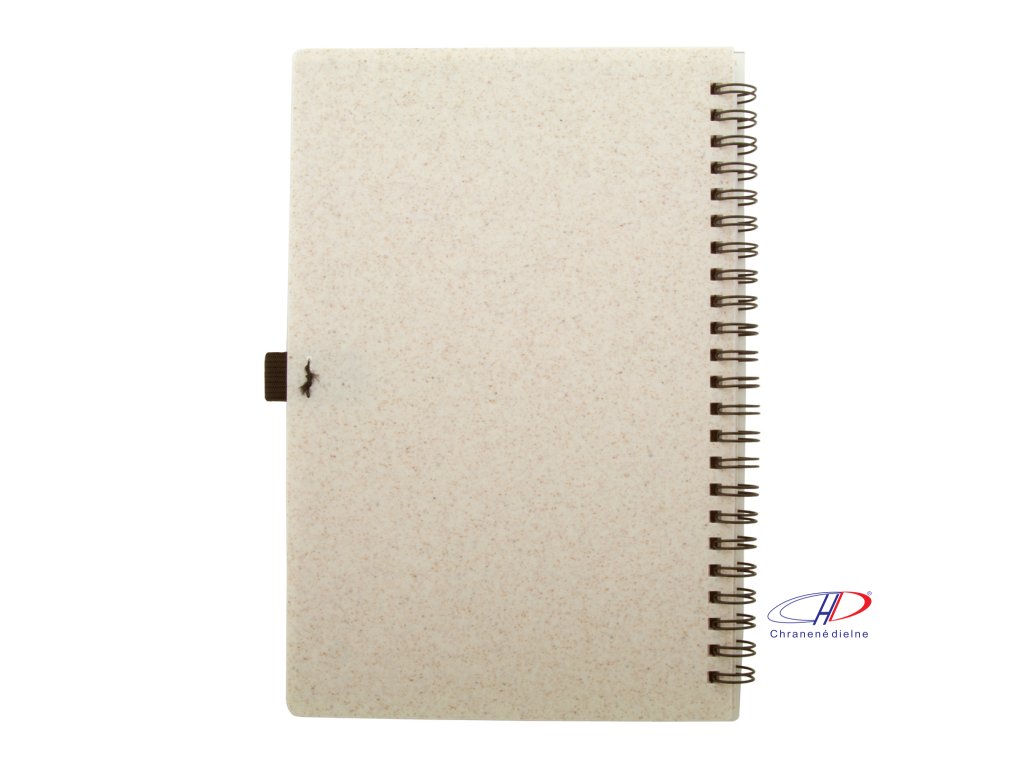 Ekologický špirálový blok A5 potiahnutý plastom z pšeničnej slamy so 70 linajkovými listami z recyklovaného papiera a držiakom na pero.