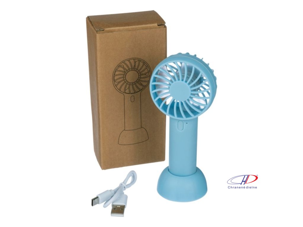 Elektrický ručný ventilátor s batériou 600 mAh a nabíjacím portom typu C vrátane nabíjacieho kábla. Súčasťou balenia je stojan pre zvislé umiestnenie. Ventilátor ponúka 3 rýchlostné režimy. Jednotlivo balený v hnedej kartónovej krabici.Dodatočné parametre