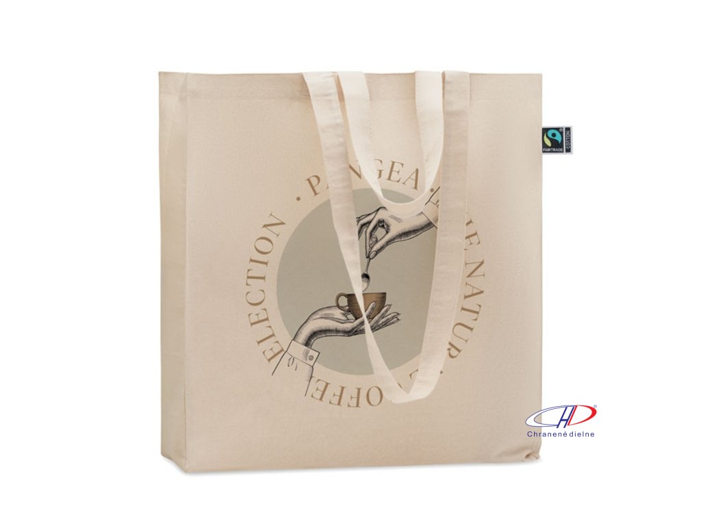 Nákupná taška z fairtrade 180 g/m2 bavlny s dlhým uchom.
