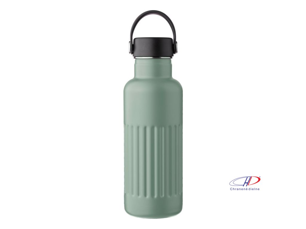 Fľaša z recyklovanej nehrdzavejúcej ocele (500 ml). Vnútorná strana z nehrdzavejúcej ocele 304 a vonkajšia strana z nehrdzavejúcej ocele 201 s rebrovaným úchopom. Má viečko z PP a železa s rukoväťou z TPE. Jednotlivo balené v hnedej kartónovej krabici.Dodatočné parametre