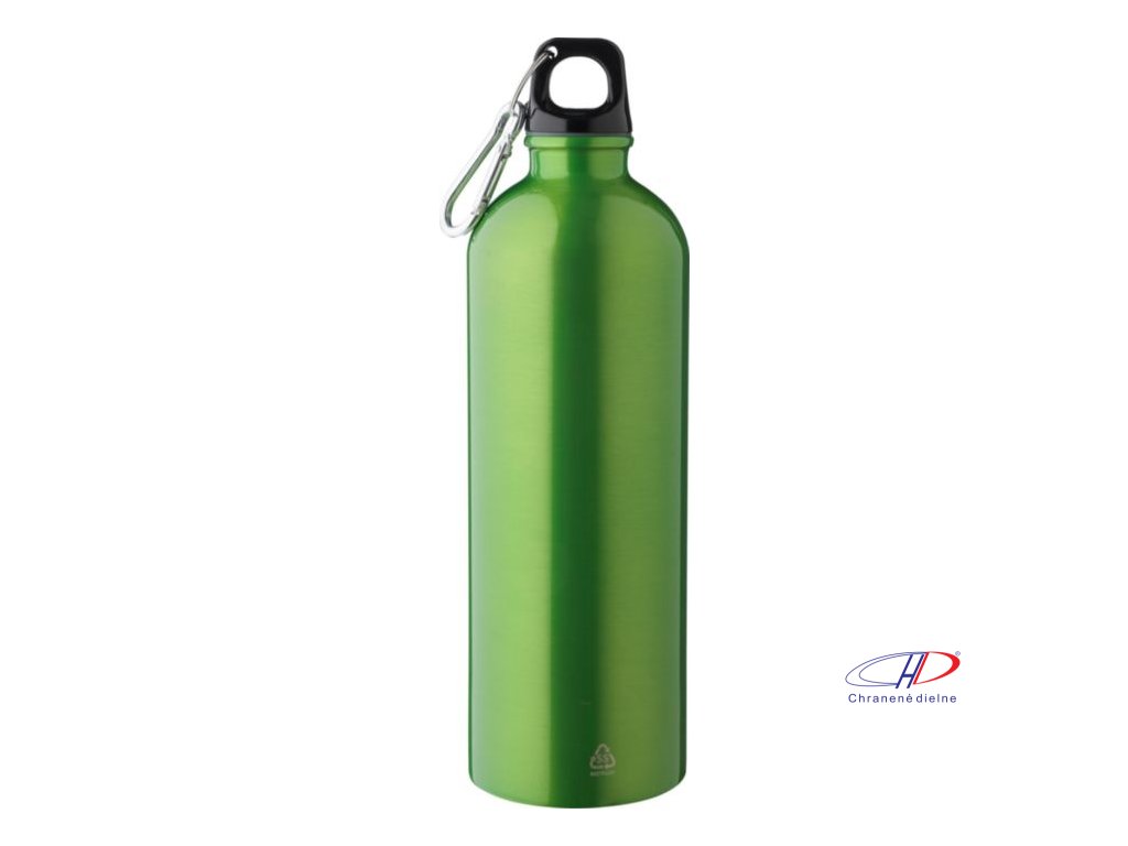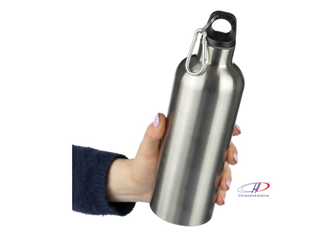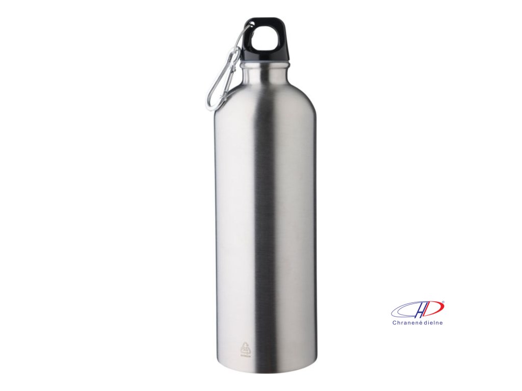 Jednostenná fľaša z recyklovanej nehrdzavejúcej ocele s objemom 750 ml, PP viečkom a striebornou hliníkovou karabínou. Na prednej strane je vyryté recyklované logo. Nie je vhodná do umývačky riadu.Dodatočné parametre