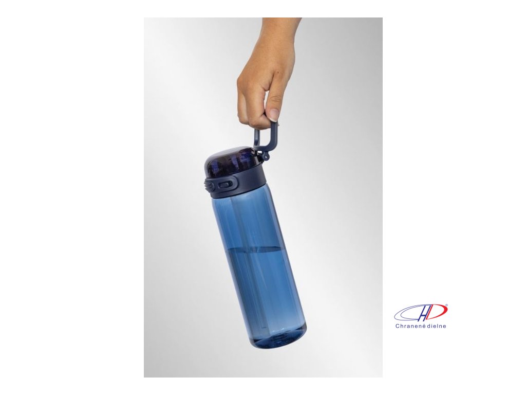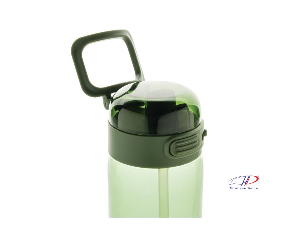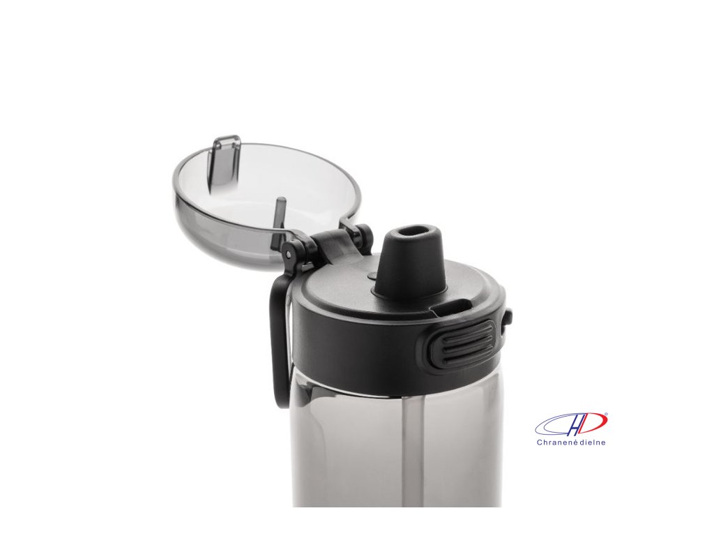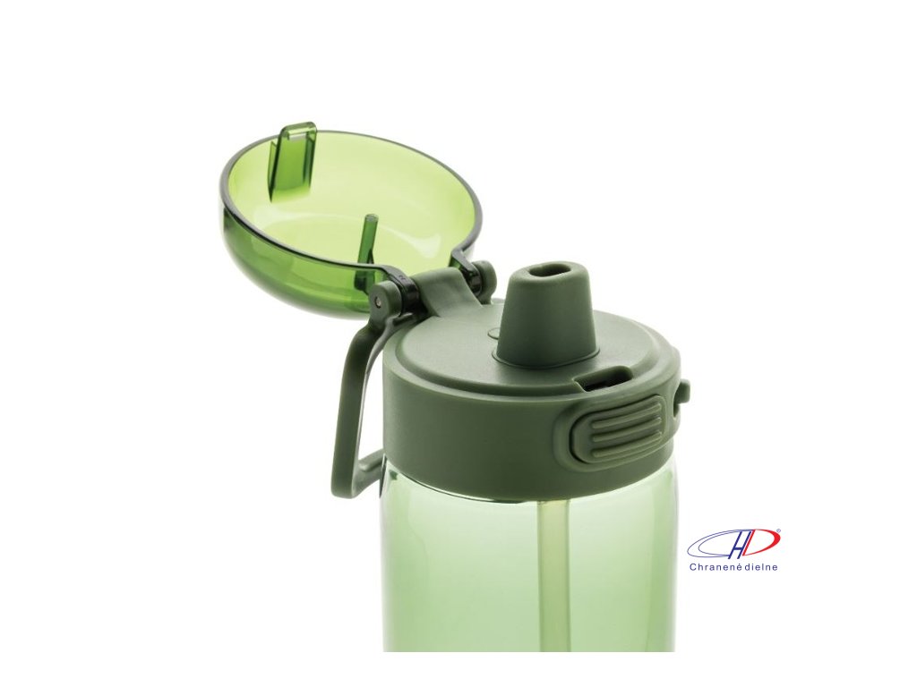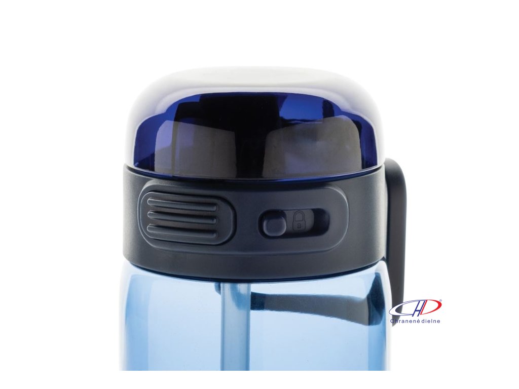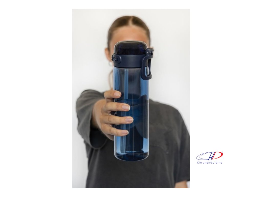 Jednoduchým kliknutím sa otvorí uzáver a odhalí vstavanú slamku. Bezpečnostný zámok zabezpečí, že viečko zostane pevne zatvorené aj vo vnútri tašky. Praktické pútko na prenášanie.Fľaša je vyrobená z 55 % recyklovaného PET plastu s certifikáciou RCS.Dodatočné parametre