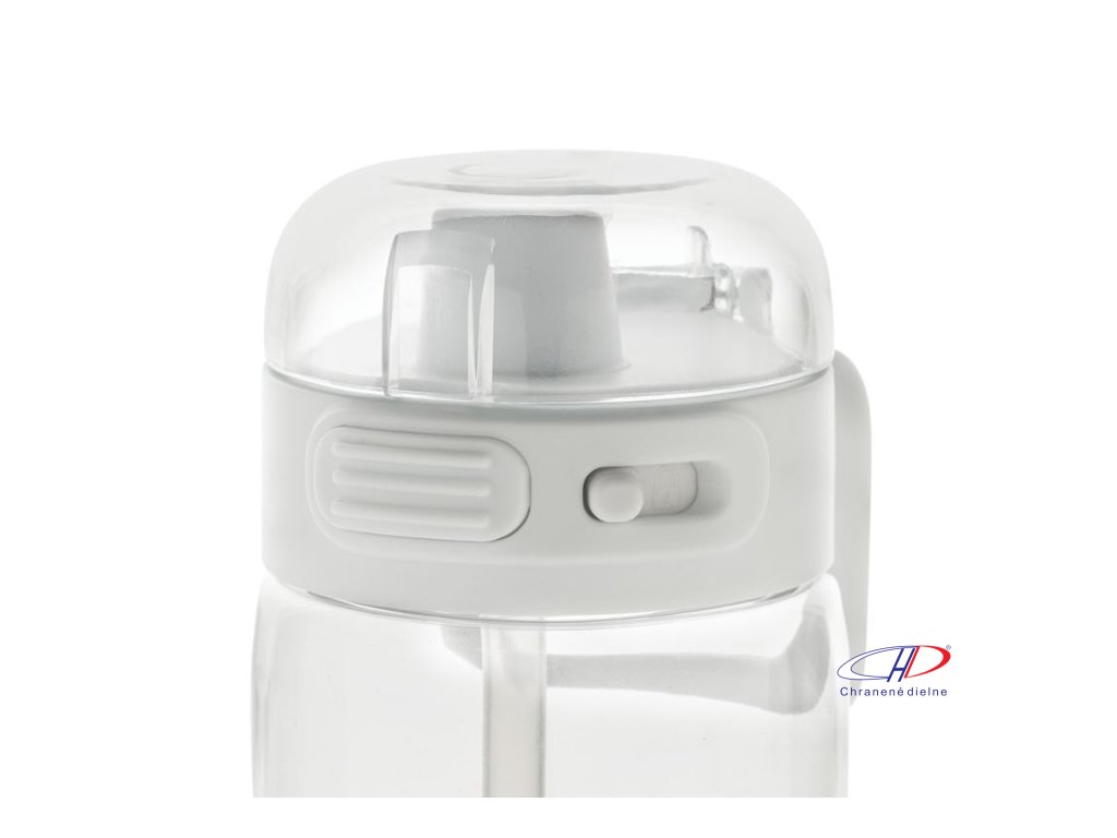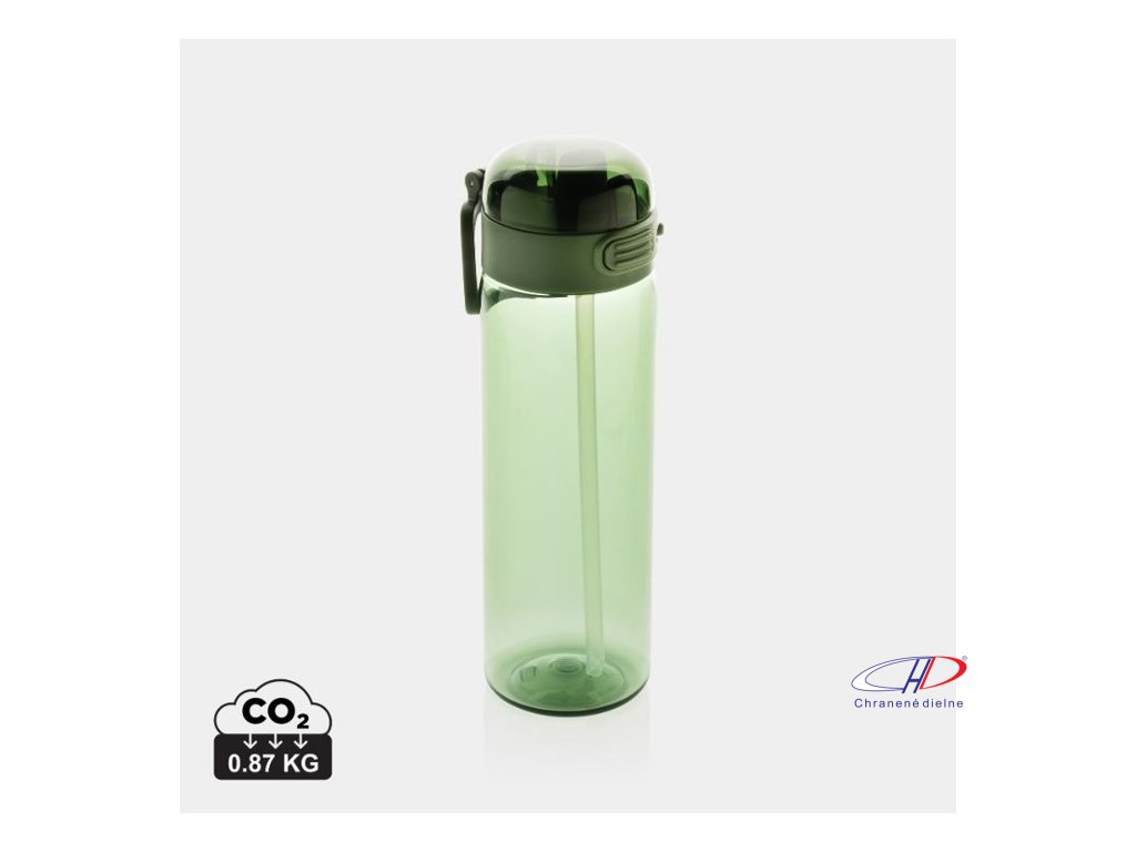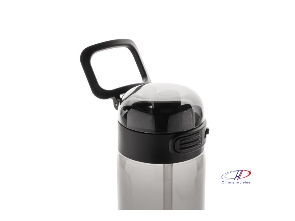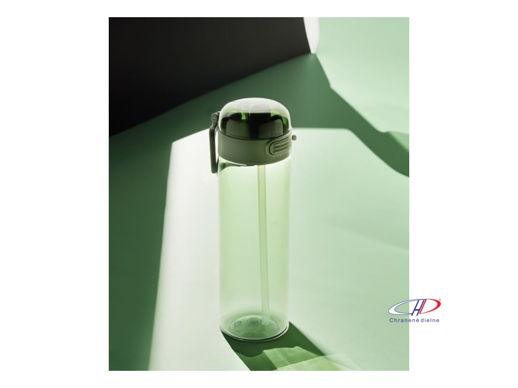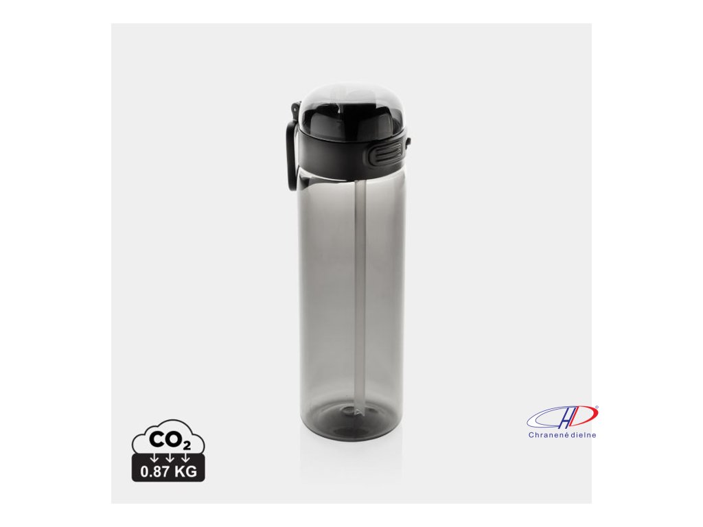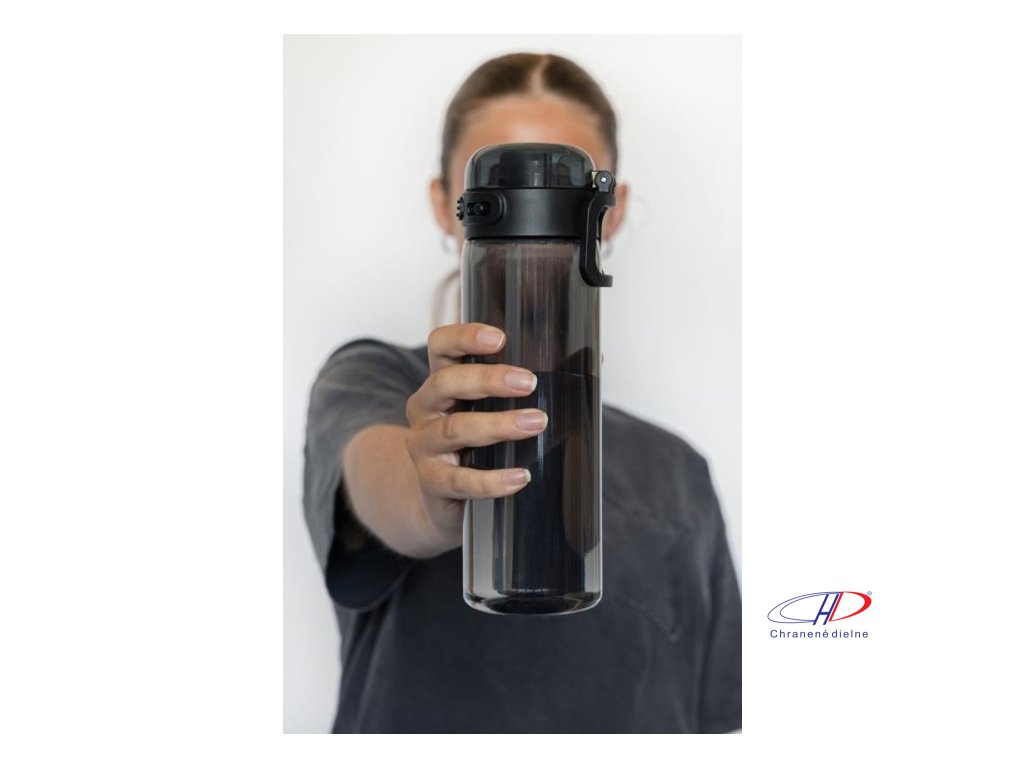 Jednoduchým kliknutím sa otvorí uzáver a odhalí vstavanú slamku. Bezpečnostný zámok zabezpečí, že viečko zostane pevne zatvorené aj vo vnútri tašky. Praktické pútko na prenášanie.Fľaša je vyrobená z 55 % recyklovaného PET plastu s certifikáciou RCS.Dodatočné parametre