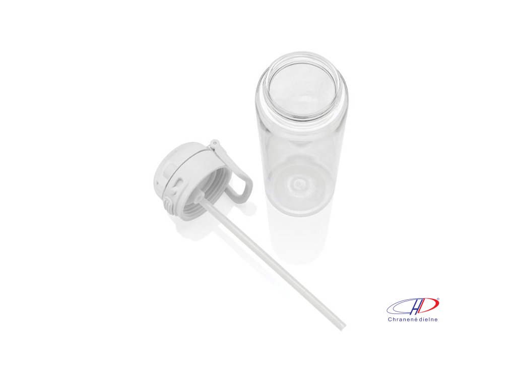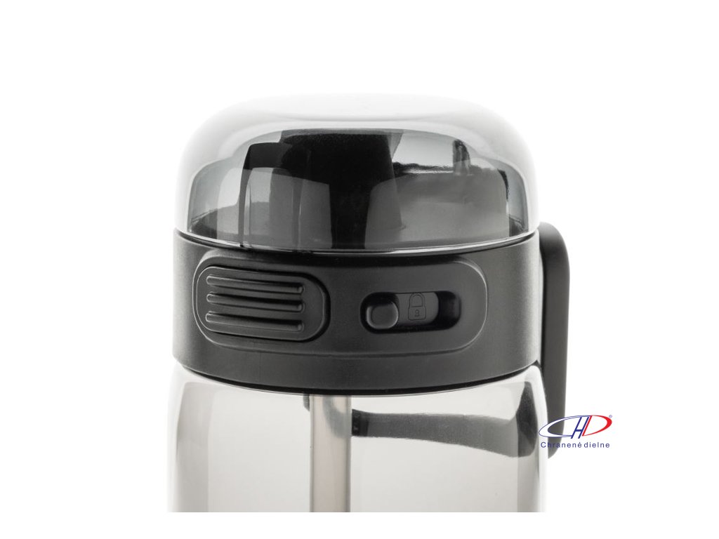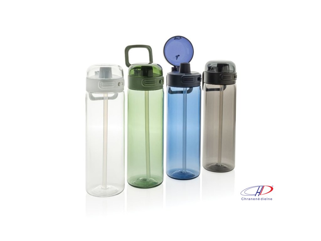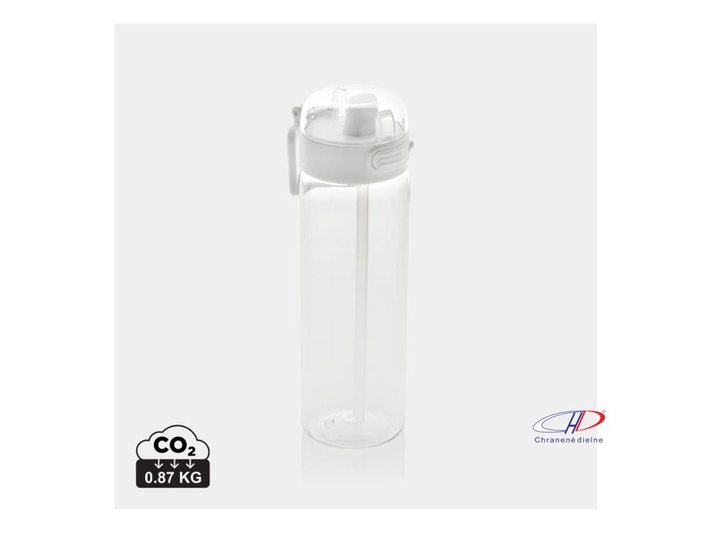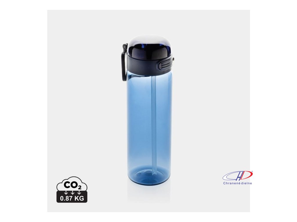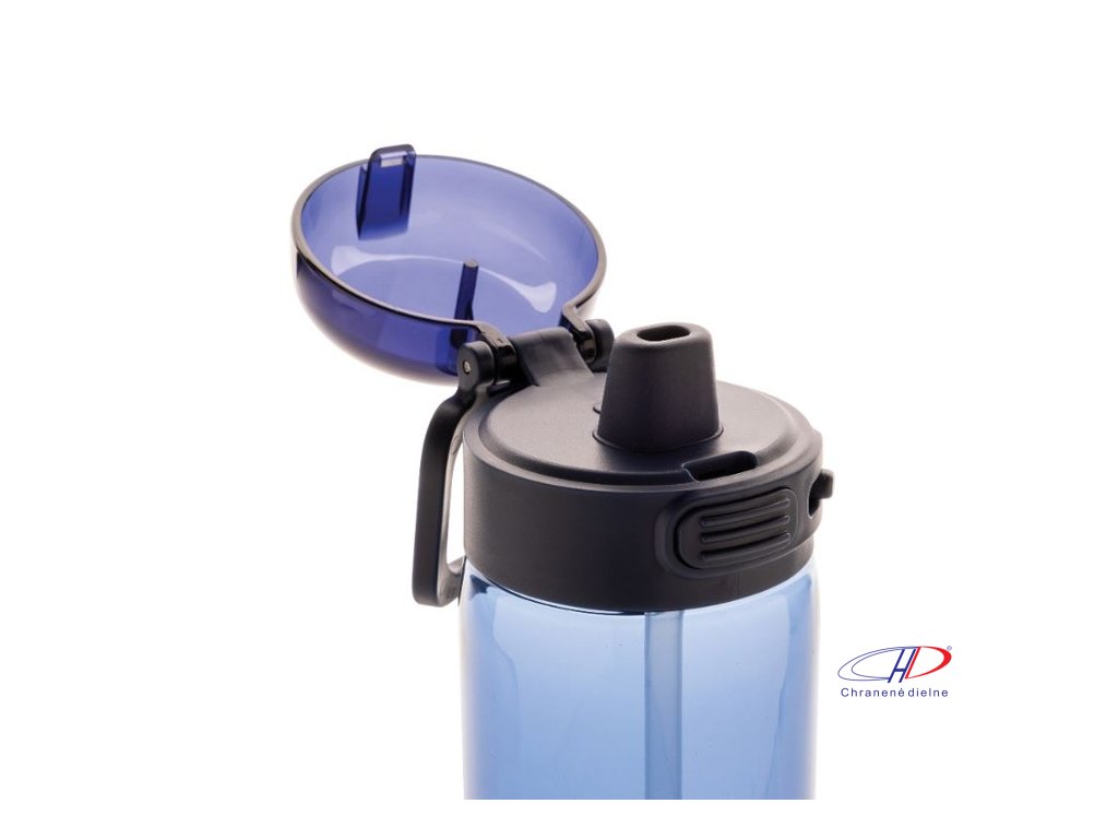 Jednoduchým kliknutím sa otvorí uzáver a odhalí vstavanú slamku. Bezpečnostný zámok zabezpečí, že viečko zostane pevne zatvorené aj vo vnútri tašky. Praktické pútko na prenášanie.Fľaša je vyrobená z 55 % recyklovaného PET plastu s certifikáciou RCS.Dodatočné parametre