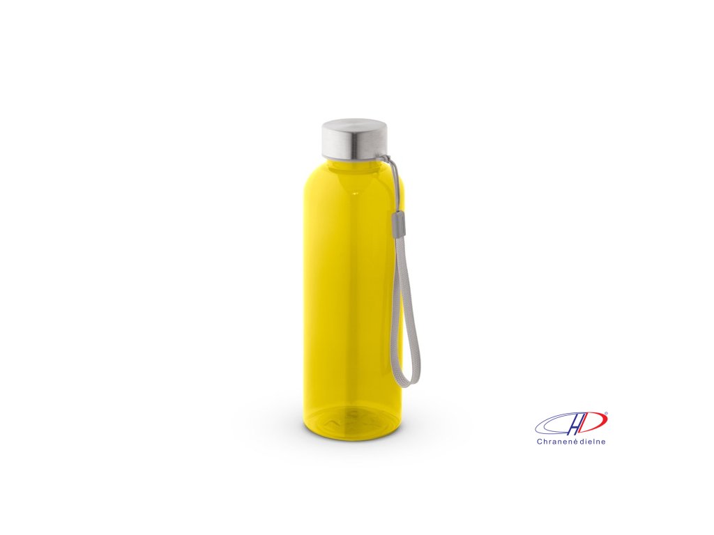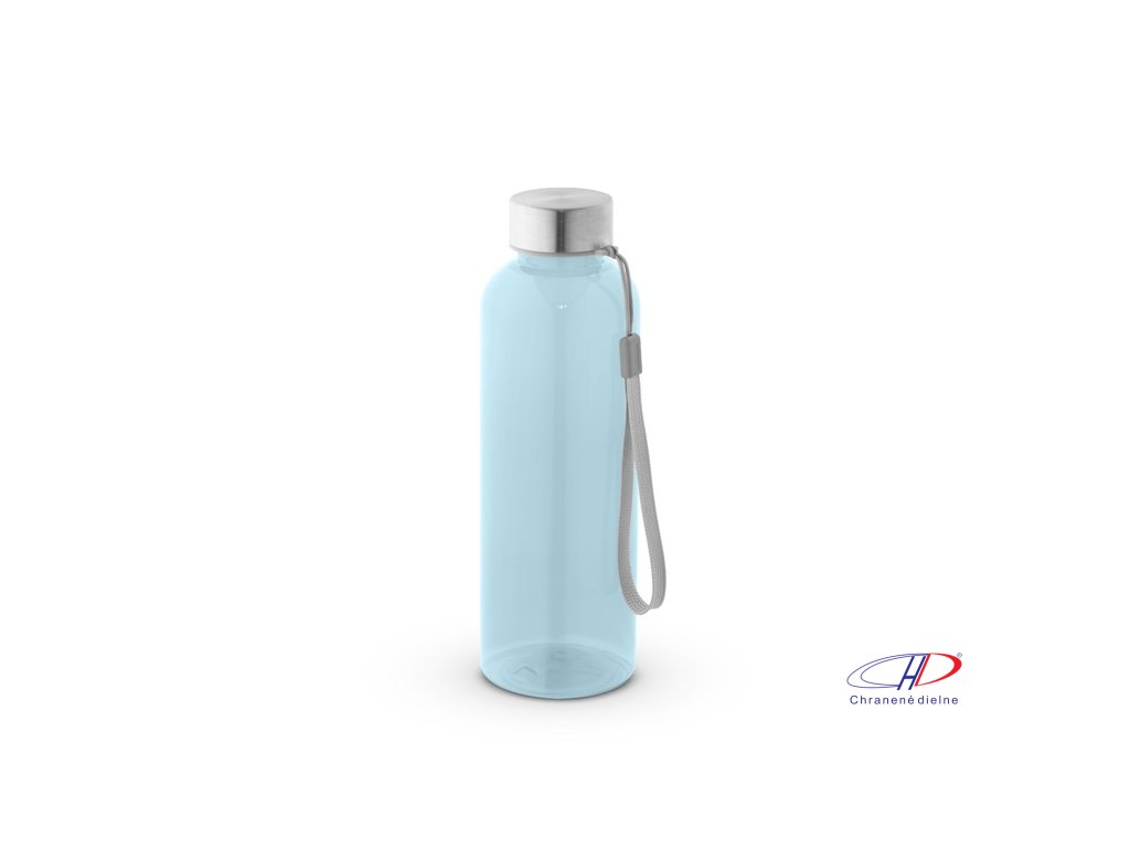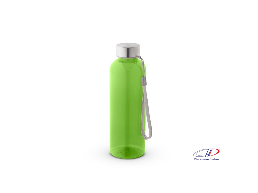 Fľaša z recyklovaného PET (100% RPET) s priesvitným lesklým povrchom. Nepriepustné veko z nehrdzavejúcej ocele s polyesterovým lankom pre jednoduchú prepravu. Objem až 600 ml.Dodatočné parametre