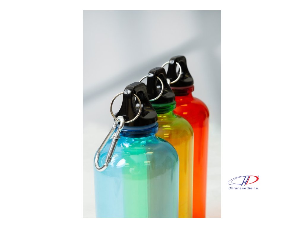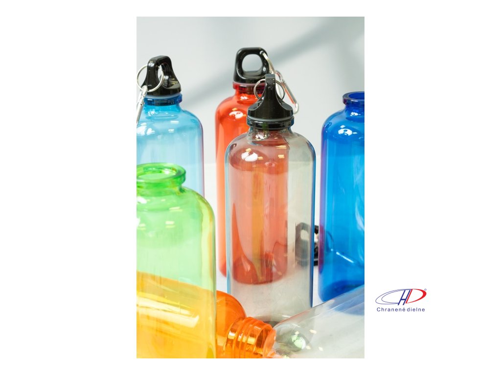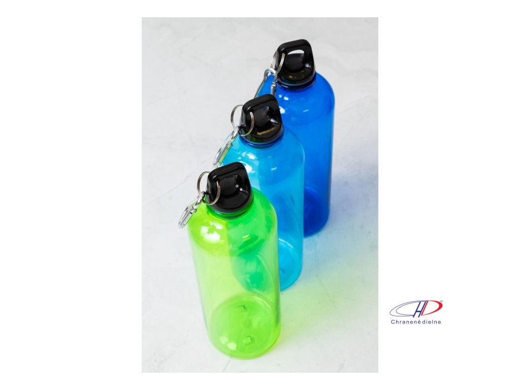 RPET fľaša s hliníkovou karabínou, 600 ml. Bez BPA. Nevhodné pre sýtené nápoje.