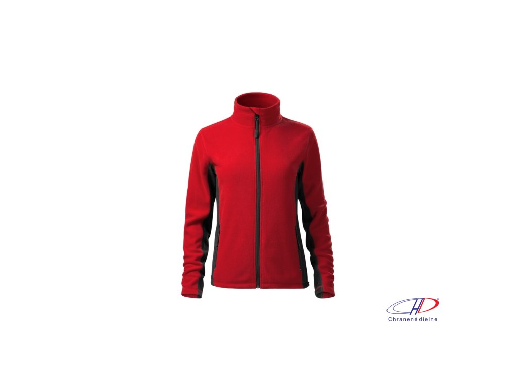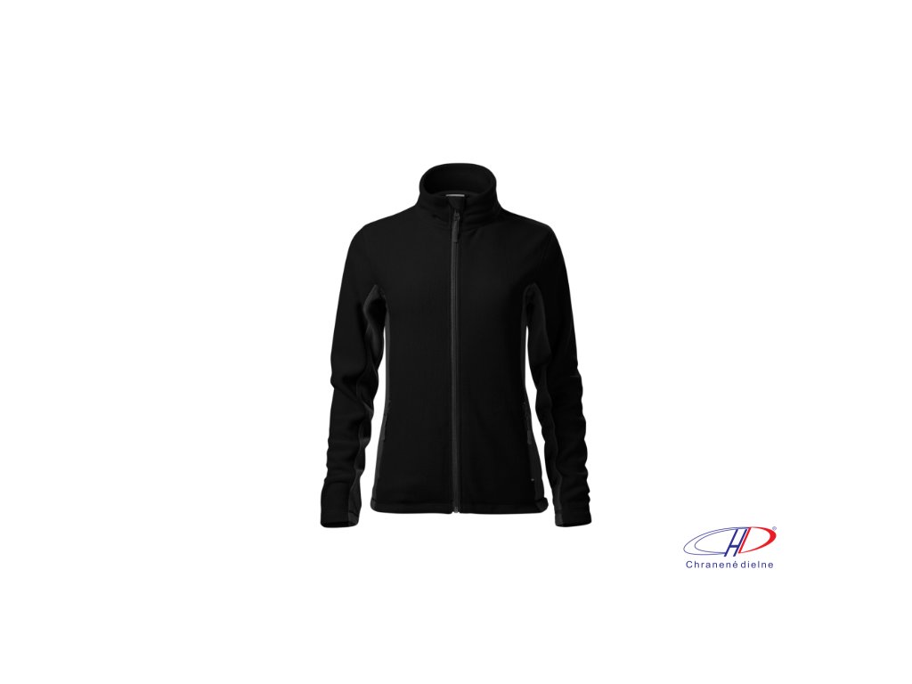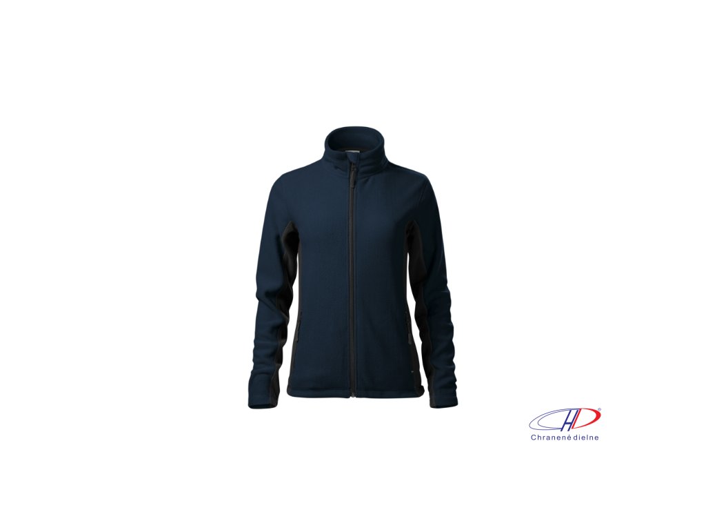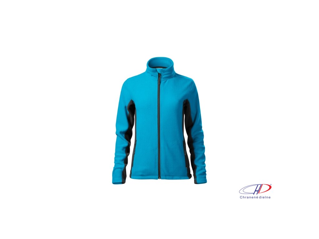 hrejivý materiál, ľahko vypasovaný strih, vnútorná časť priekrčníka začistená kontrastnou páskou, celozapínací špirálový zips s krytkou brady, vrecká so špirálovým zipsom, dolný lem na stiahnutie elastickou šnúrkou, dekorativné prešitie, antipilingová úprava z vonkajšej strany