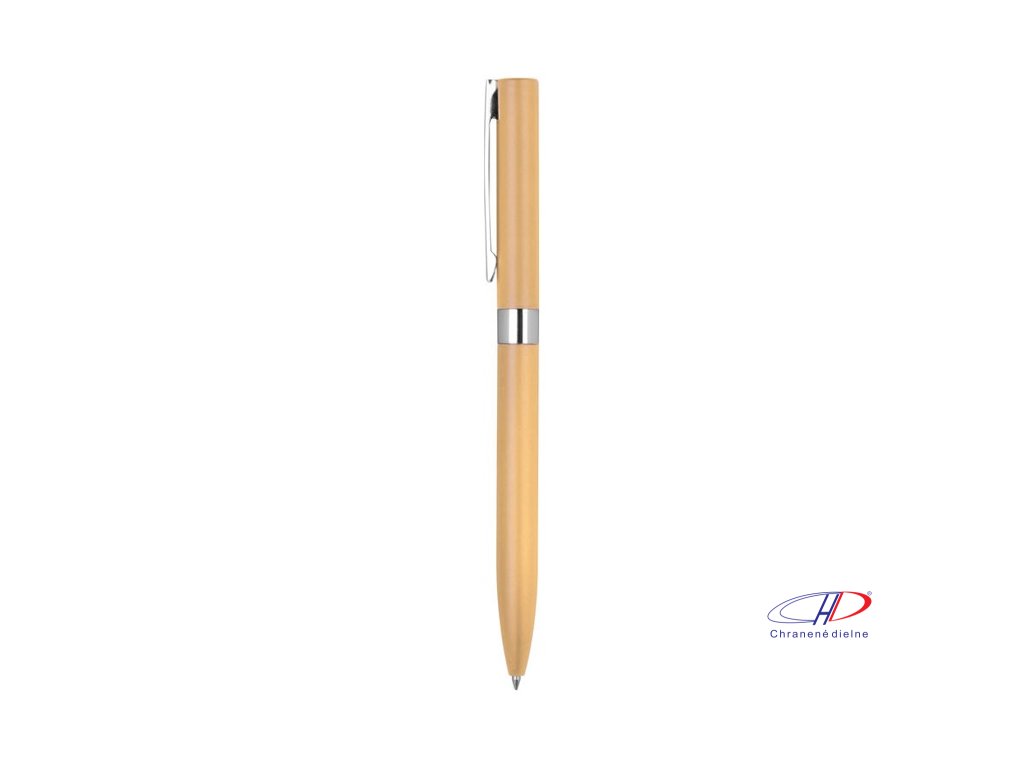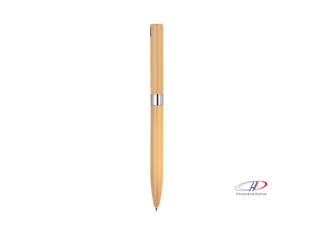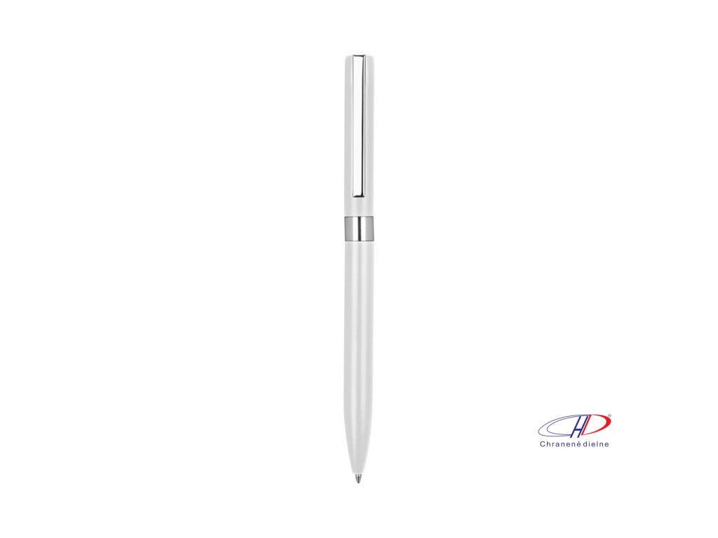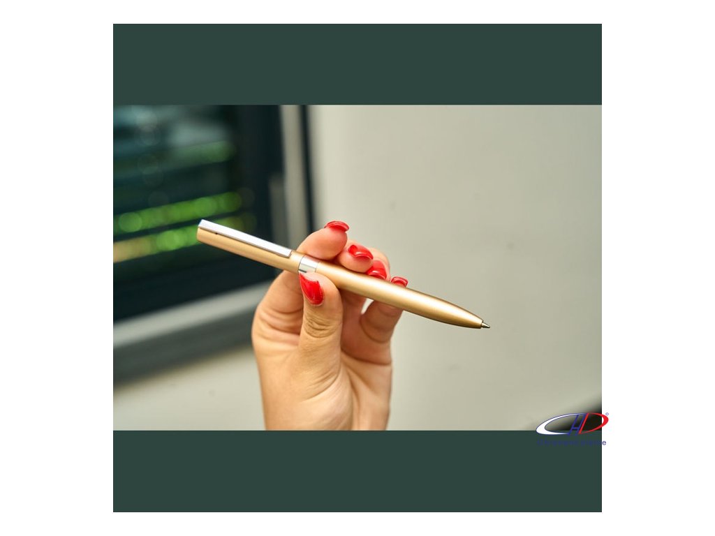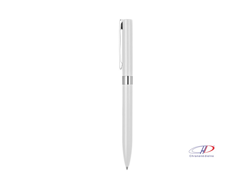 Elegantné kovové gélové pero s doplnkami v chrómových farbách. Hrúbka hrotu pera: 0,7 mm. Modrá náplň